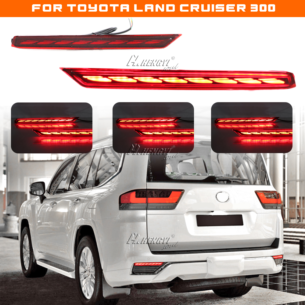 GT-Style Smoke Lens 4 in 1 Functions LED Rear Bumper Reflector Fog Light w/ Turn Signal Light For Toyota Land Cruiser J300 2021+