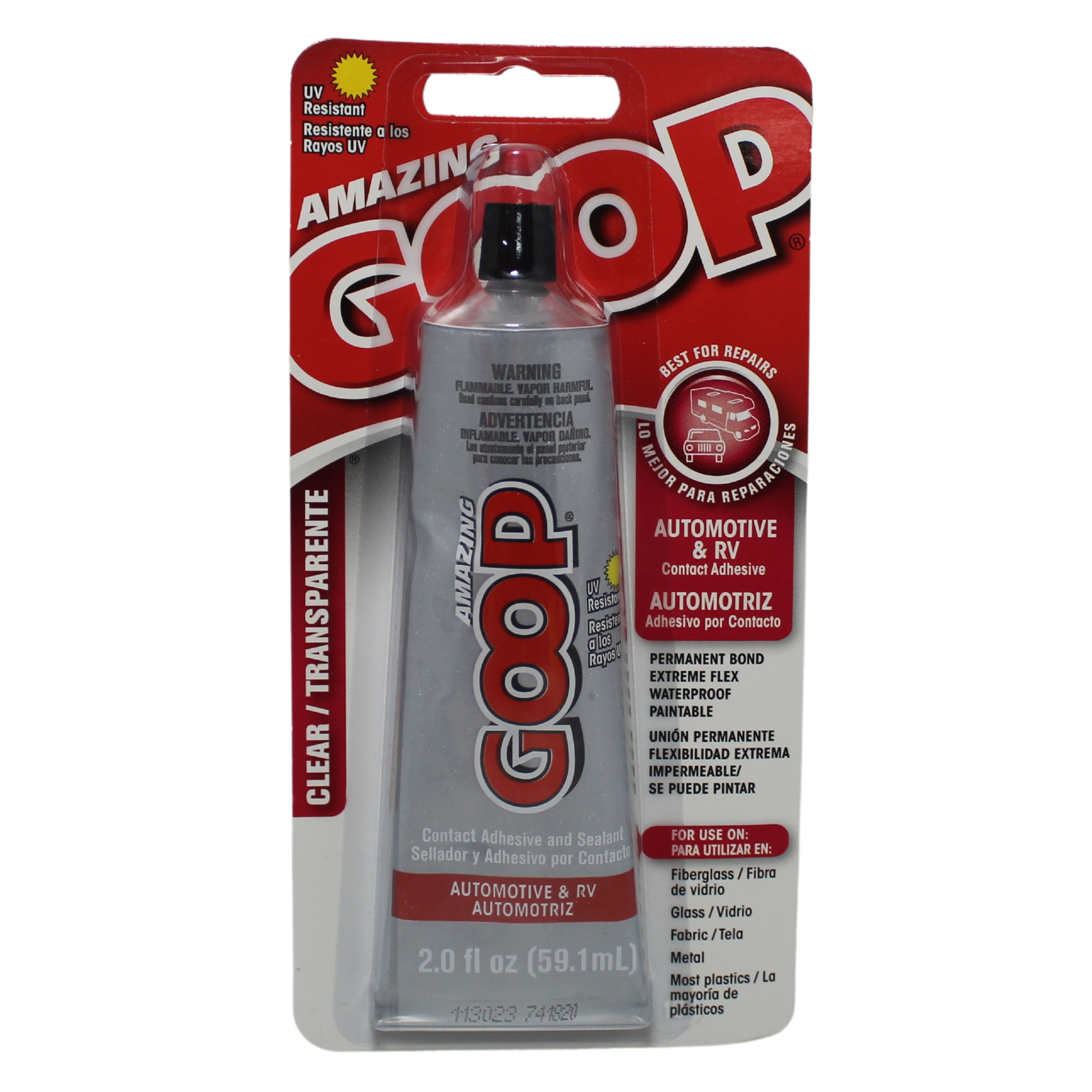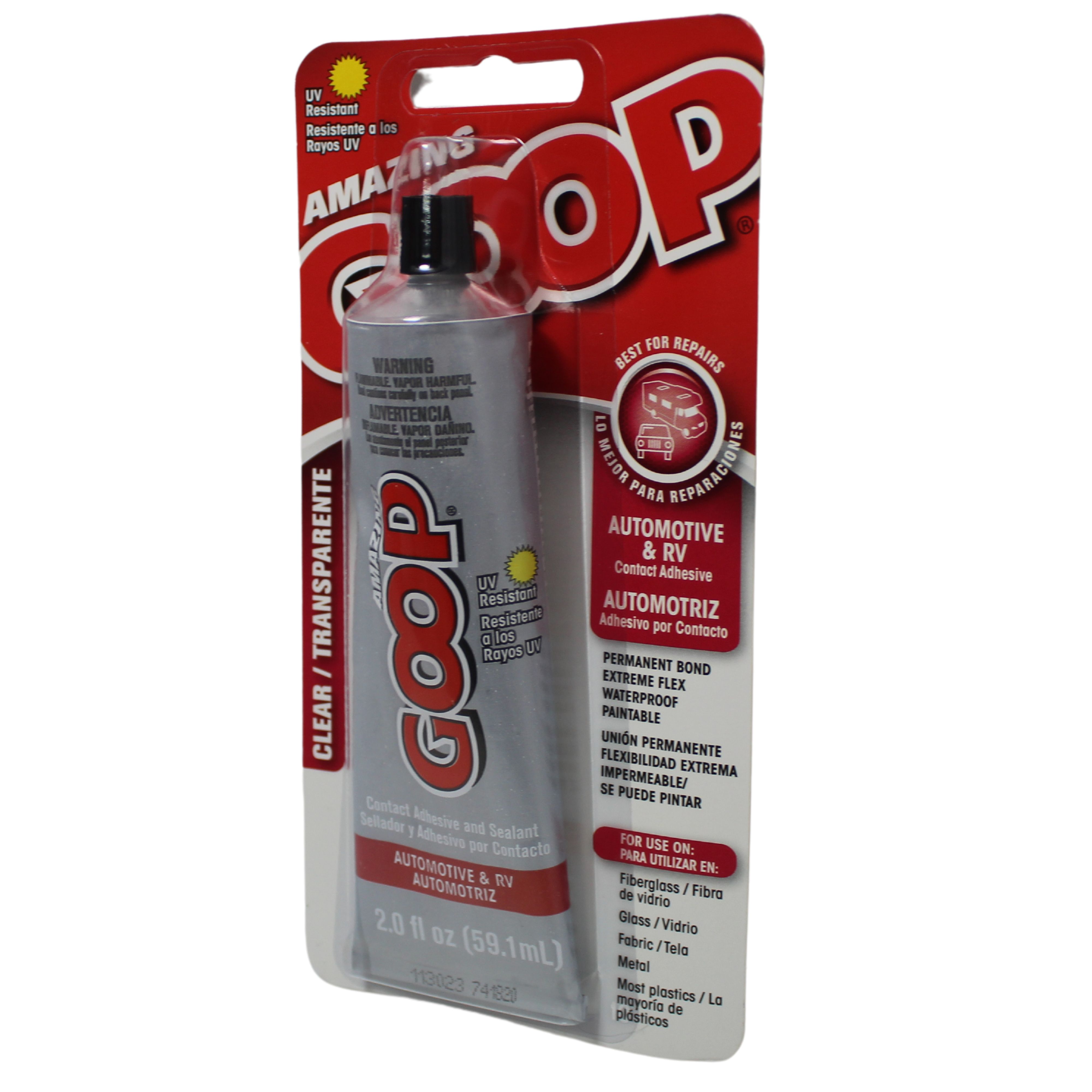 Amazing GOOP Automotive & RV is a versatile, ultra-durable adhesive specifically designed to tackle repairs across a wide range of materials commonly found in vehicles and RVs. Its weatherproof, UV-resistant formulation ensures a strong, flexible bond that can withstand road vibrations, extreme temperatures, and exposure to the elements. From fiberglass to glass, wood, metal, and more, Automotive & RV GOOP provides a dependable solution for repairing, sealing, and reinforcing surfaces, and even works as a coating for battery terminals.