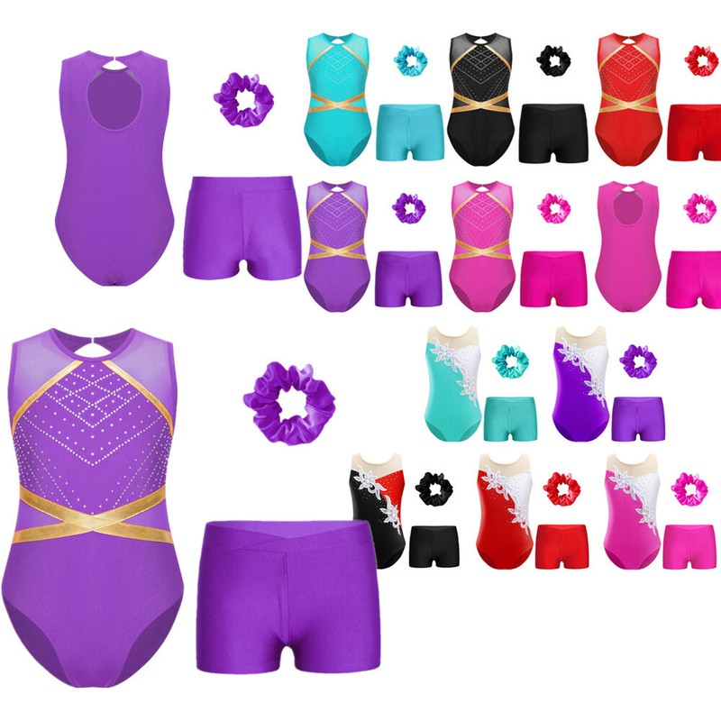 UK Gymnastics Leotards Girls Dance Ballet Long Sleeve Tank Unitard with Shorts