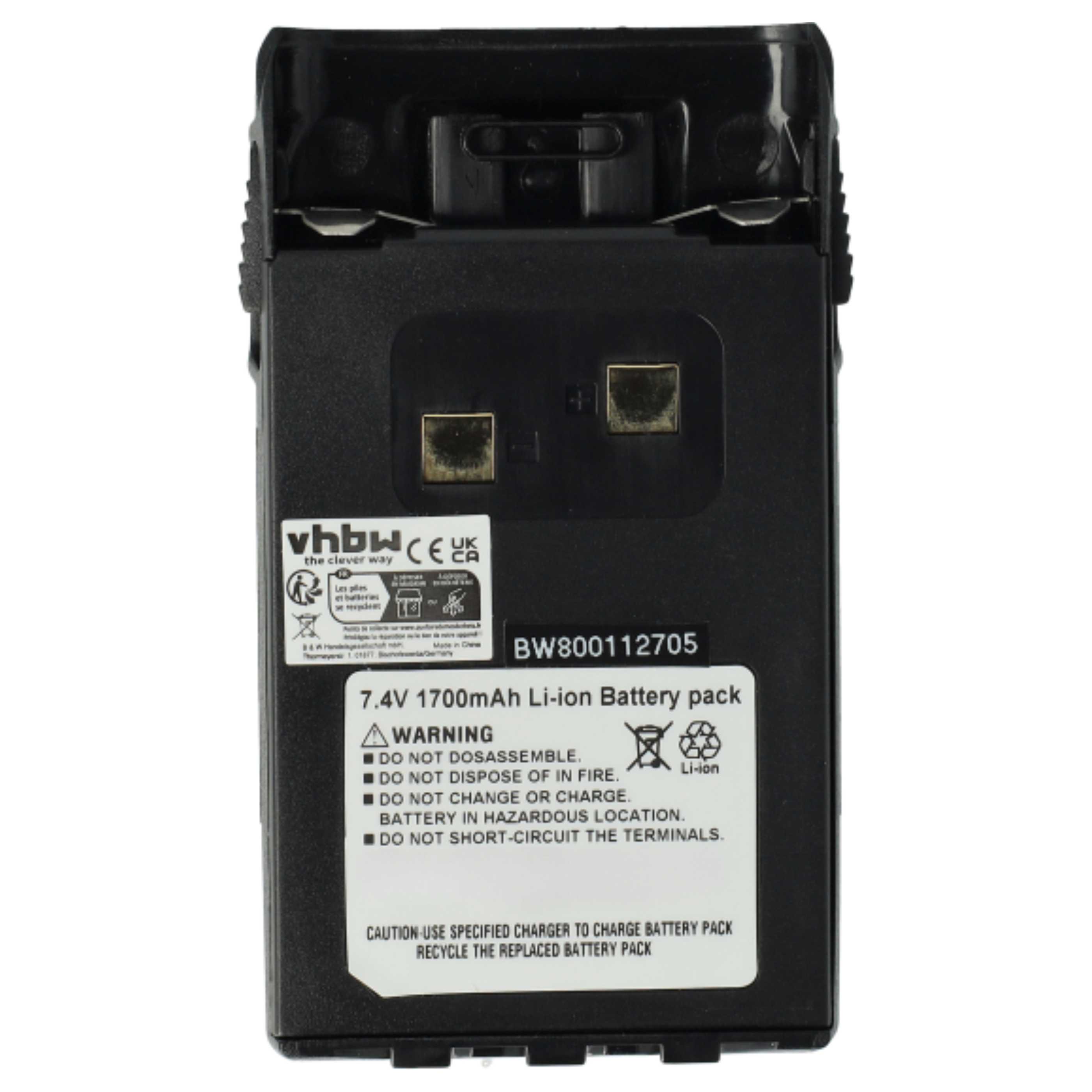 vhbw 2x Leistungsfähiger Ersatz-Akku für Midland CT790 Funkgerät oder Walkie-Talkie (Li-Ion, 1700mAh, 7,4V)