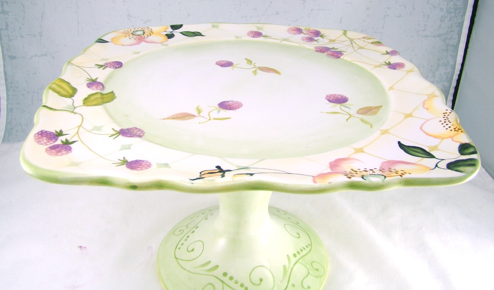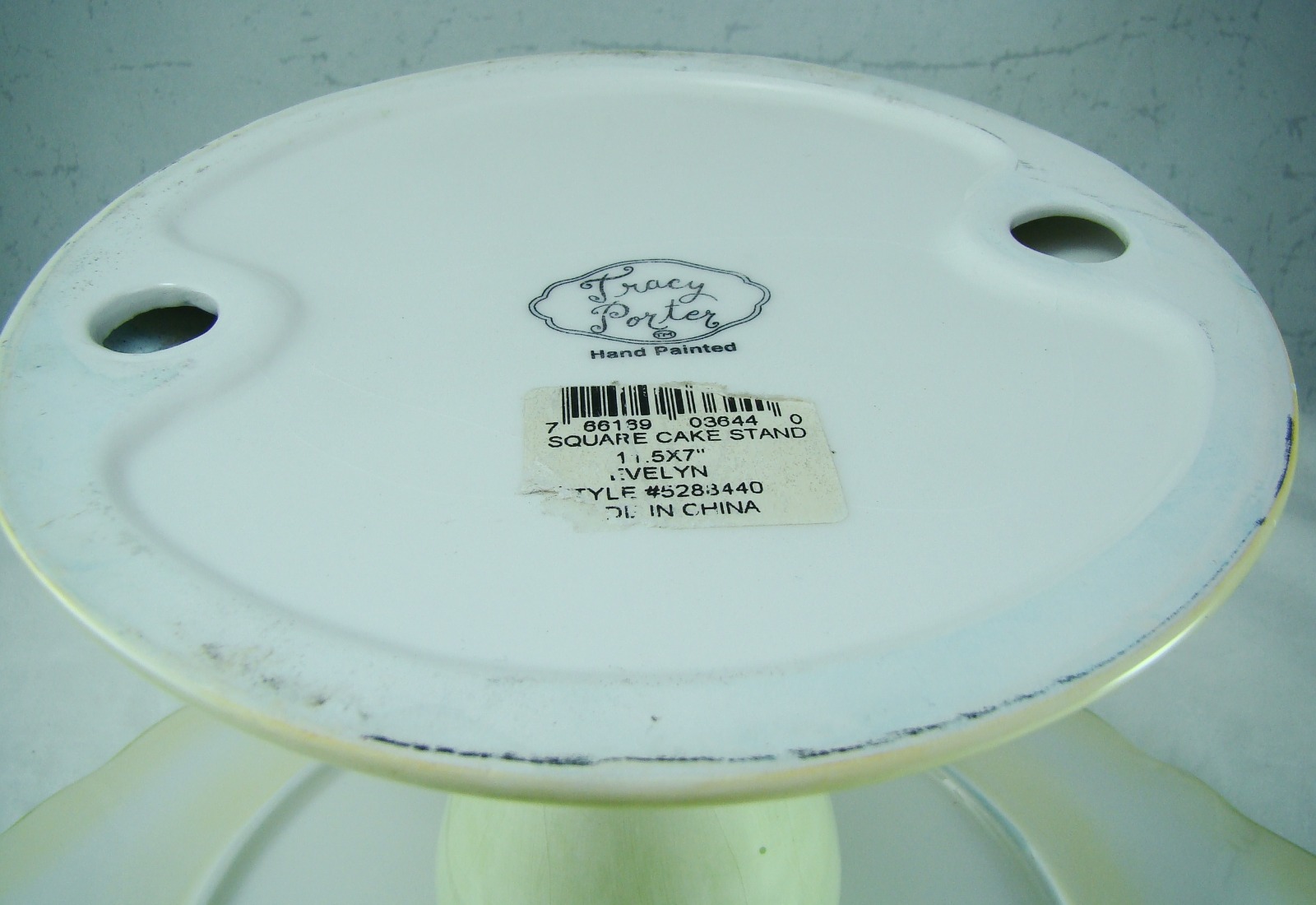 Tracy Porter EVELYN Cake Stand NEW w sticker, but CRAZED 11 1/2" Square