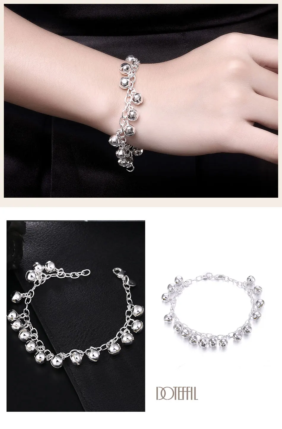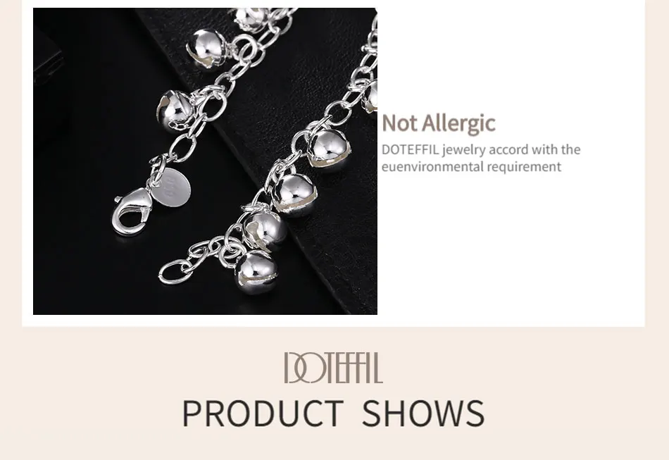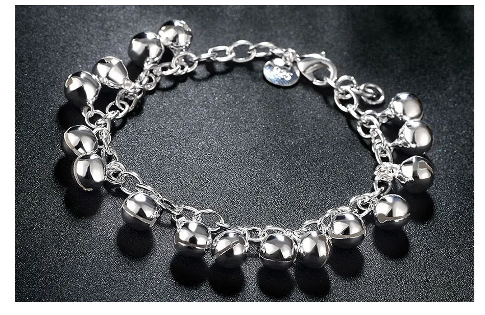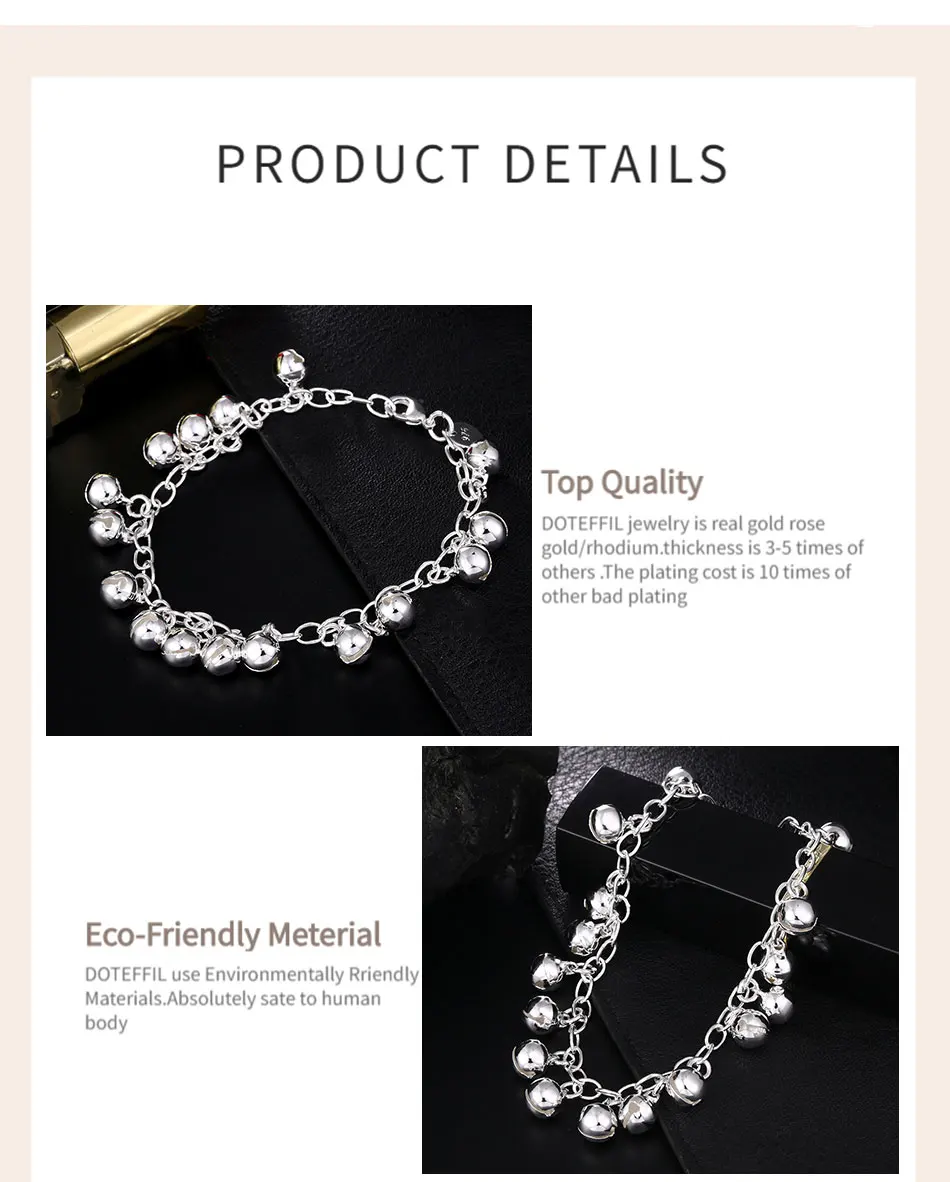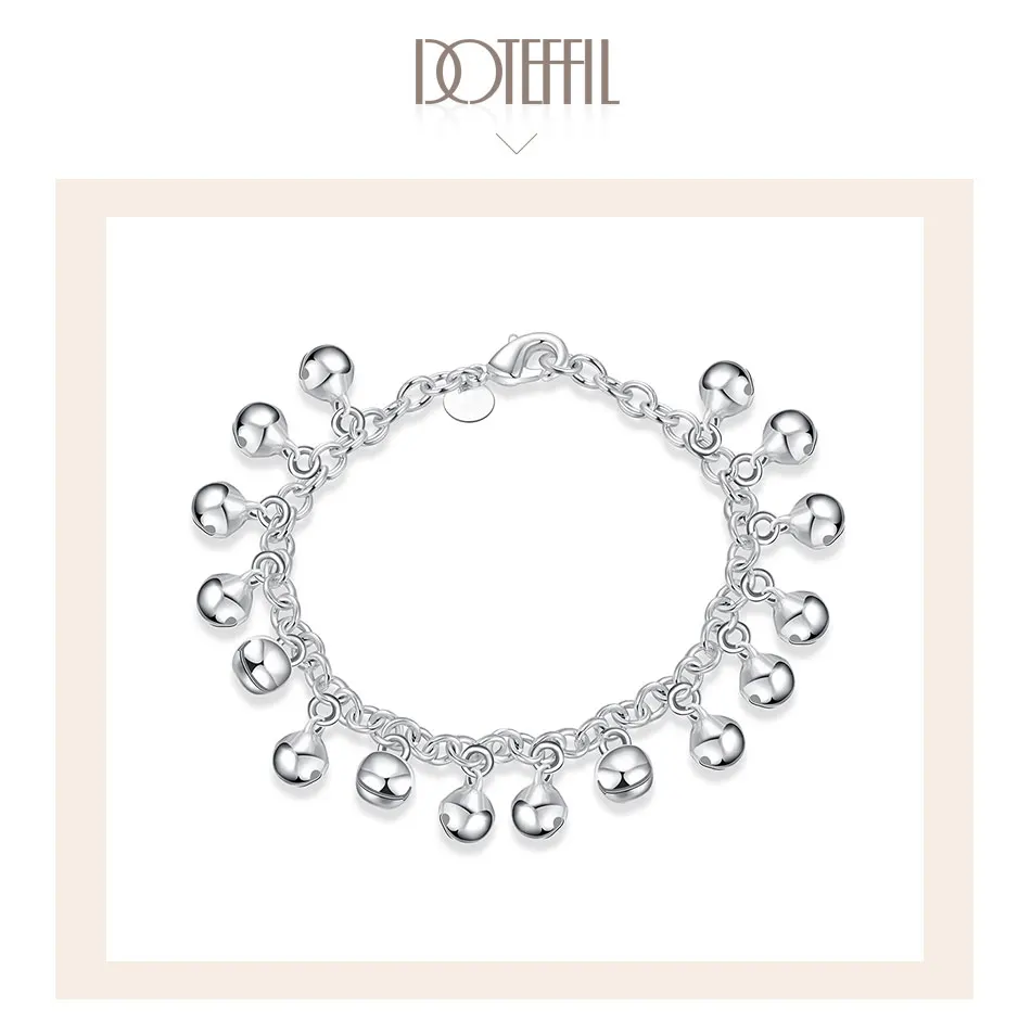 DOTEFFIL 925 Sterling Silver Circle Ring Bells Clang Bracelet For Women Wedding Engagement Party Jewelry