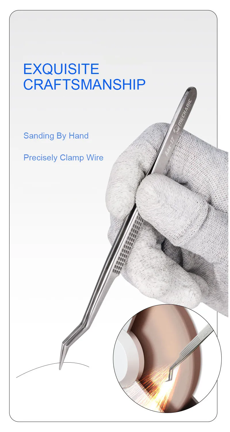 MECHANIC Aax-17 Stainless Steel Repair Tweezers for Chip Tin Planting Anti-Corrosion High Hardness Jump Wire Clamping Repair Tweezers