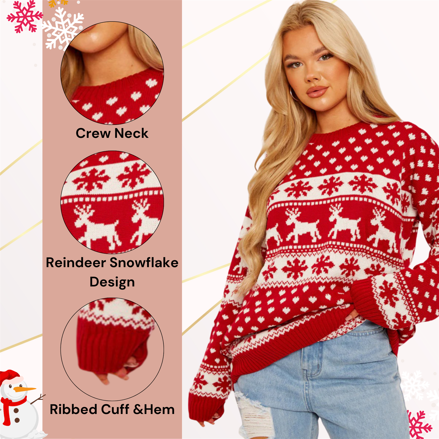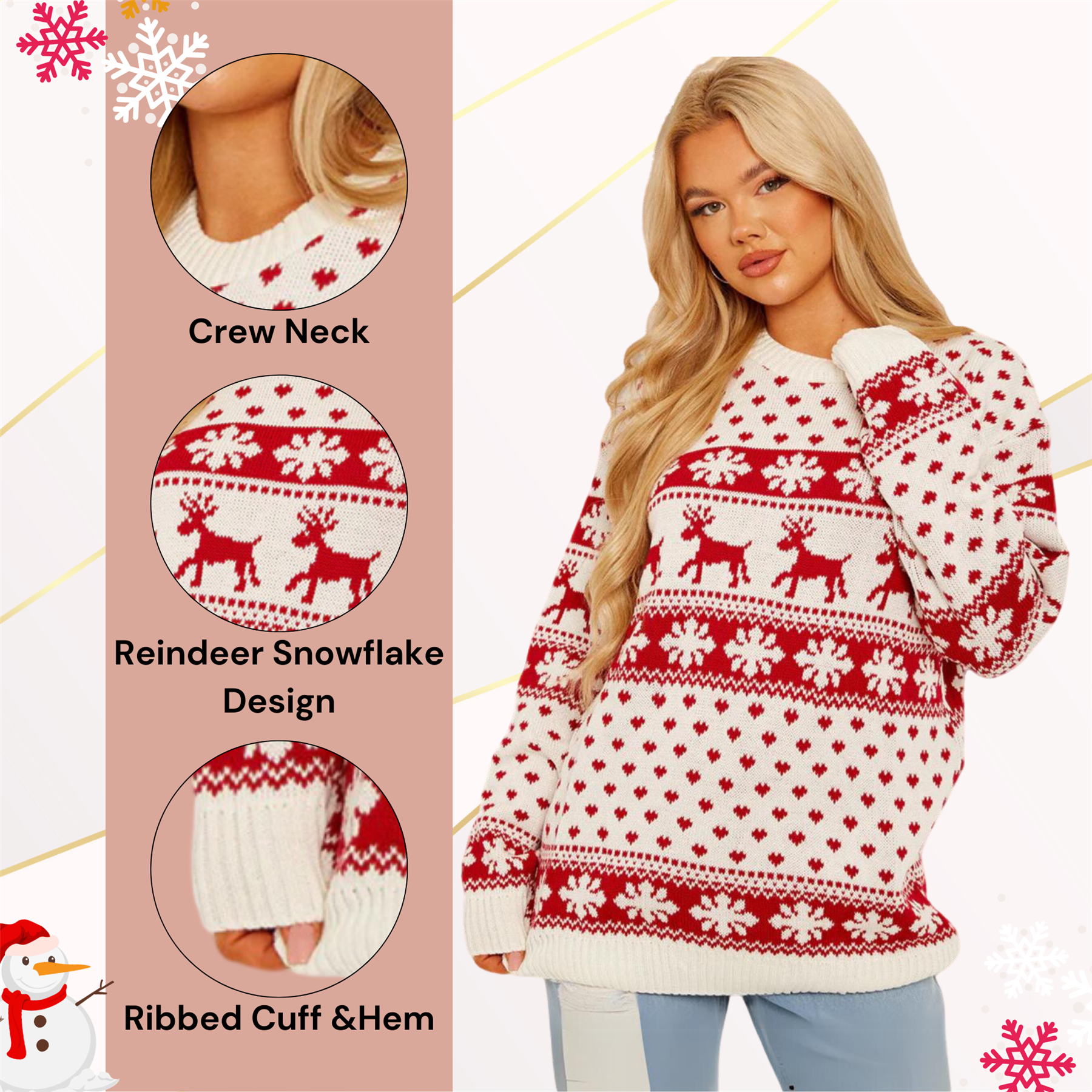 Womens Ladies Reindeer Snowflake Xmas Jumper Unisex Christmas Sweater Pullover Top Description: Product Code: XMAS_JMPR_003-1