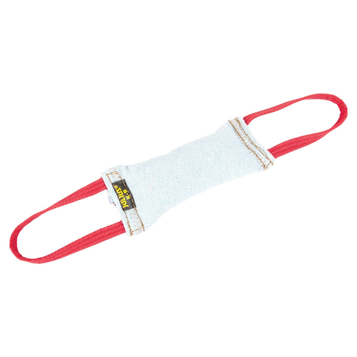 Der Dummy aus Baumwolle/Nylon ist eines der wichtigsten Hilfsmittel bei den Ausbildungstechniken, die auf der Motivation des Beutefangtriebes basieren. Die Oberfläche aus Baumwolle eignet sich bestens zu Beißübungen, da die glatte Oberfläche Ihren Hund zum harten Beißen anregt. Die Belastungsfähigkeit und Beißfestigkeit wird von den Julius-K9-Experten durch Nylon verstärkt. Im Inneren der Beißwurst befinden sich flexible Stoffe, die im Bereich der Matratzenherstellung verwendet werden.