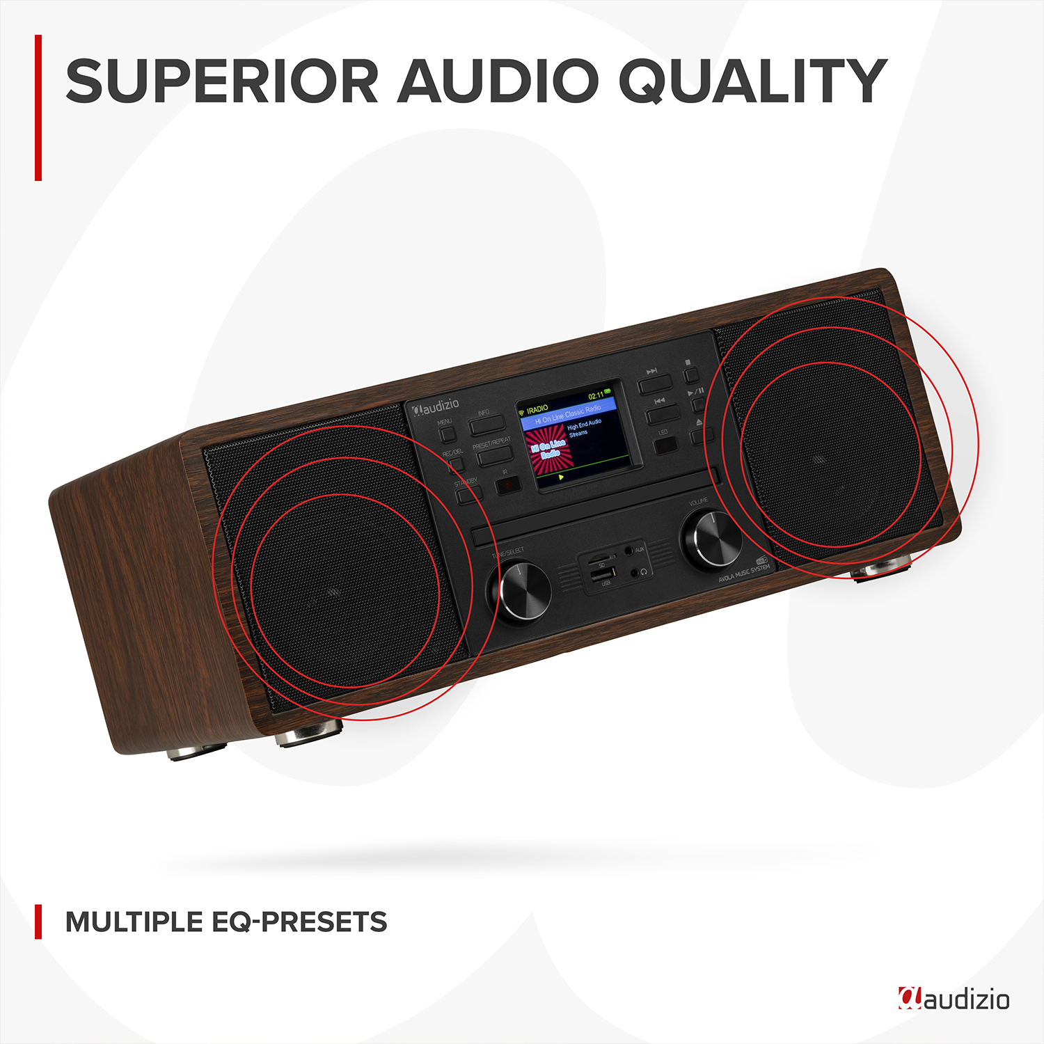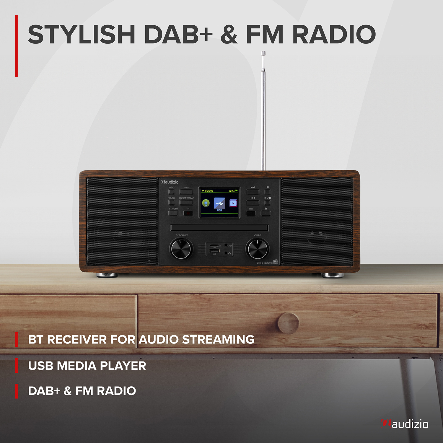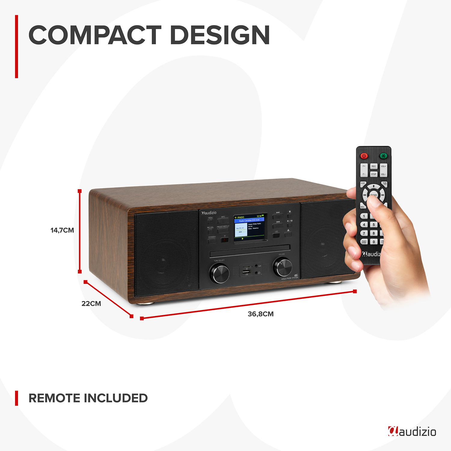 Audizio Avola DAB Radio Internet Speaker with CD Player, Bluetooth, DAB+ Wood