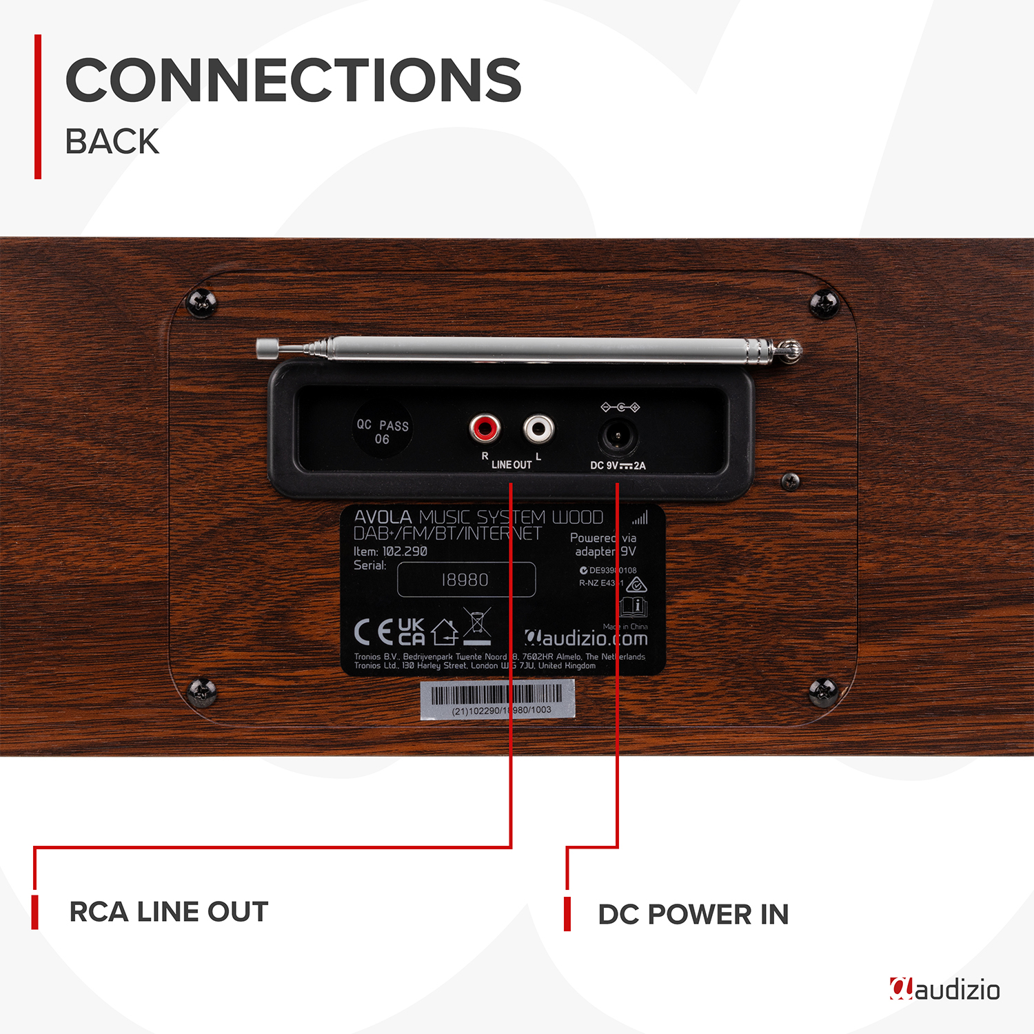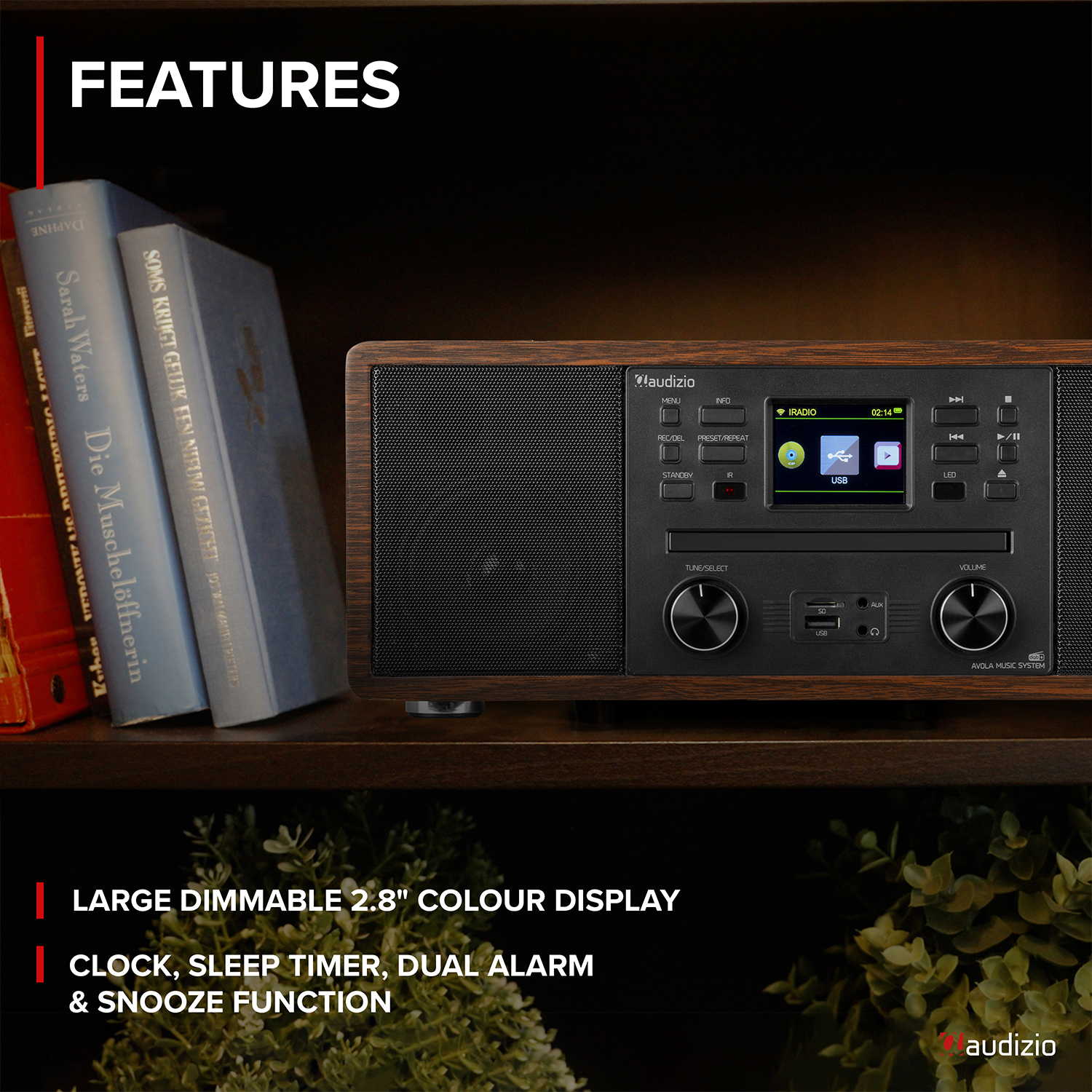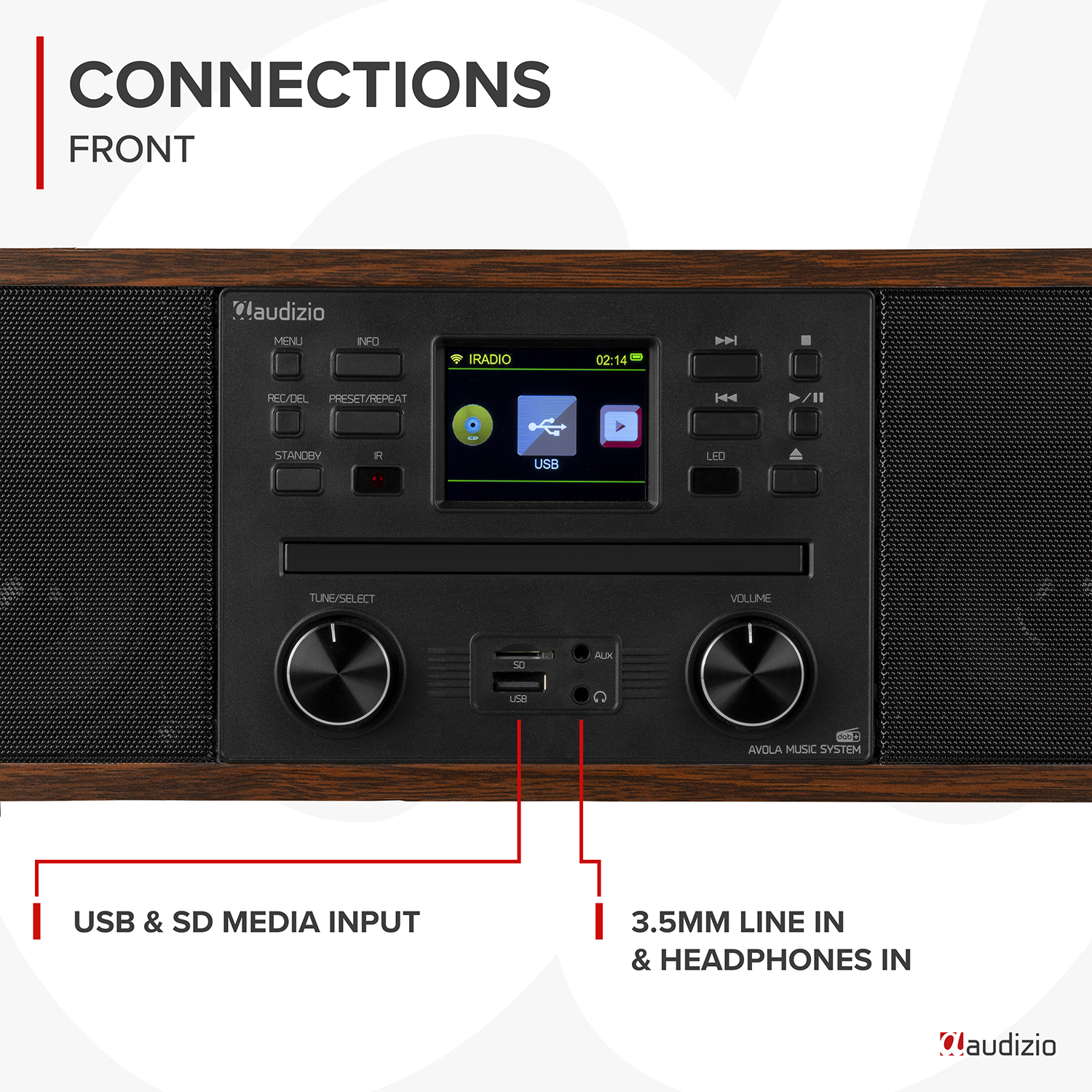 Audizio Avola DAB Radio Internet Speaker with CD Player, Bluetooth, DAB+ Wood