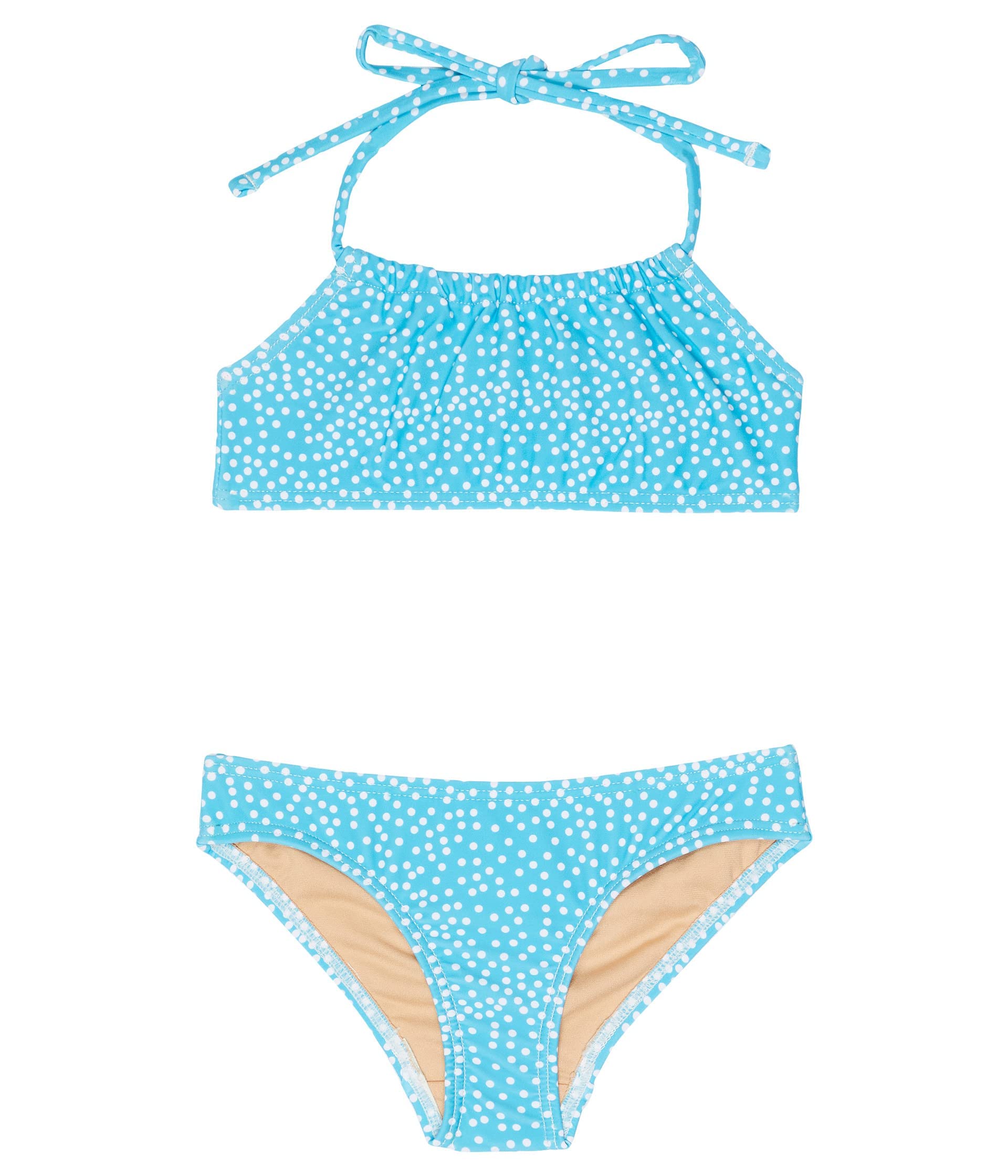 Dress up your little one in the adorable Toobydoo Fun Dots Bandeau Bikini and let them have fun in the pool. Full-lined. Bandeau top bikini with a halter tie around the neck. Allover eye-catching polka dot print. Hook-and-eye closure around the back. Full coverage bottom. Elasticized waistband for a snug fit. Pull-on style. Signature brand name rubber logo on the back. Shell: 80% nylon, 20% spandex;Lining: 92% polyester, 8% spandex. Machine washable. Imported.