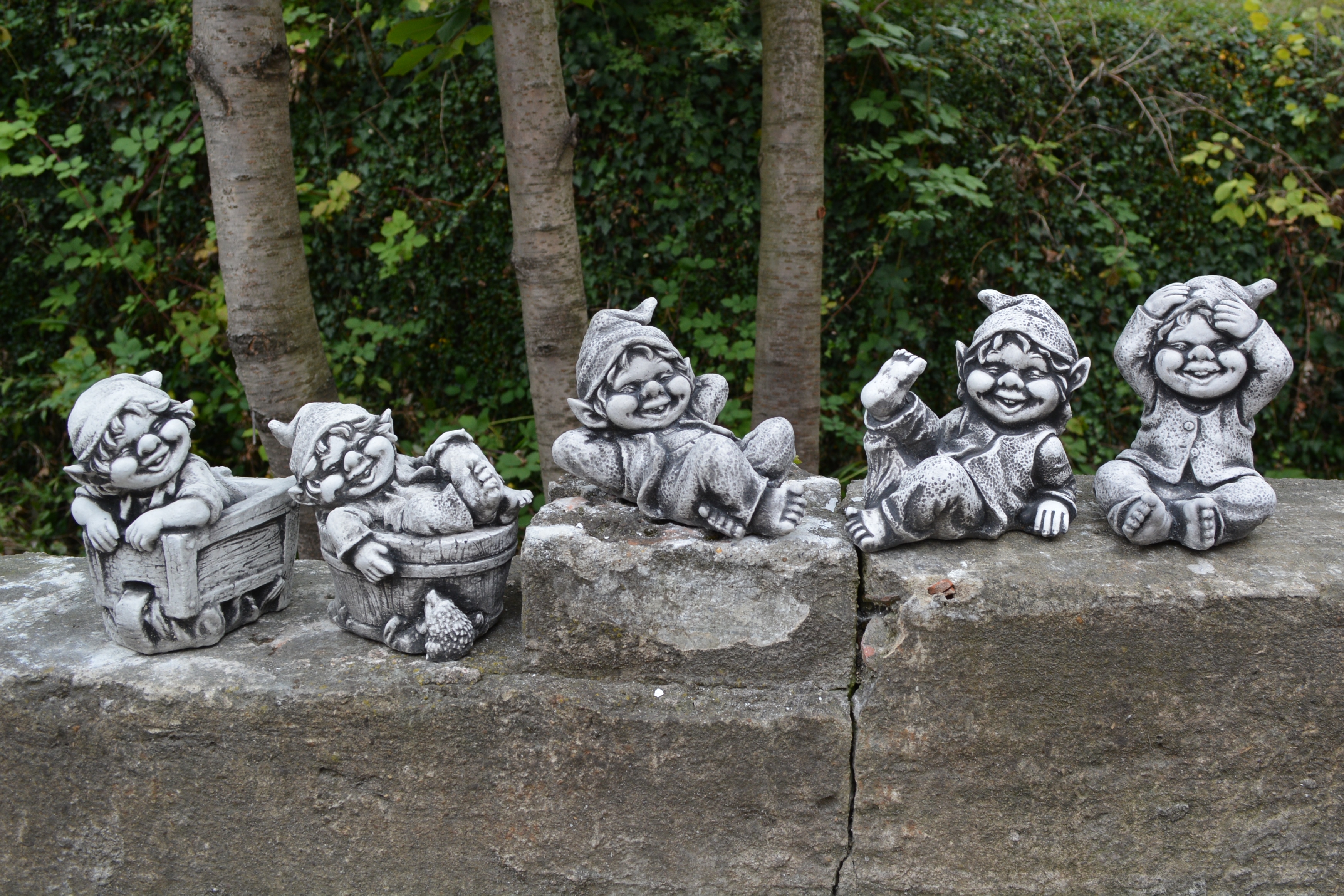SA1524_1528 Sonderangebot: Kleine Gnom Familie. Größe je: 13 - 17 cm, Farbe: Grau, Gewicht je: 2 kg, Werkstoff: Weißbeton / Steinguss.Frage stellen