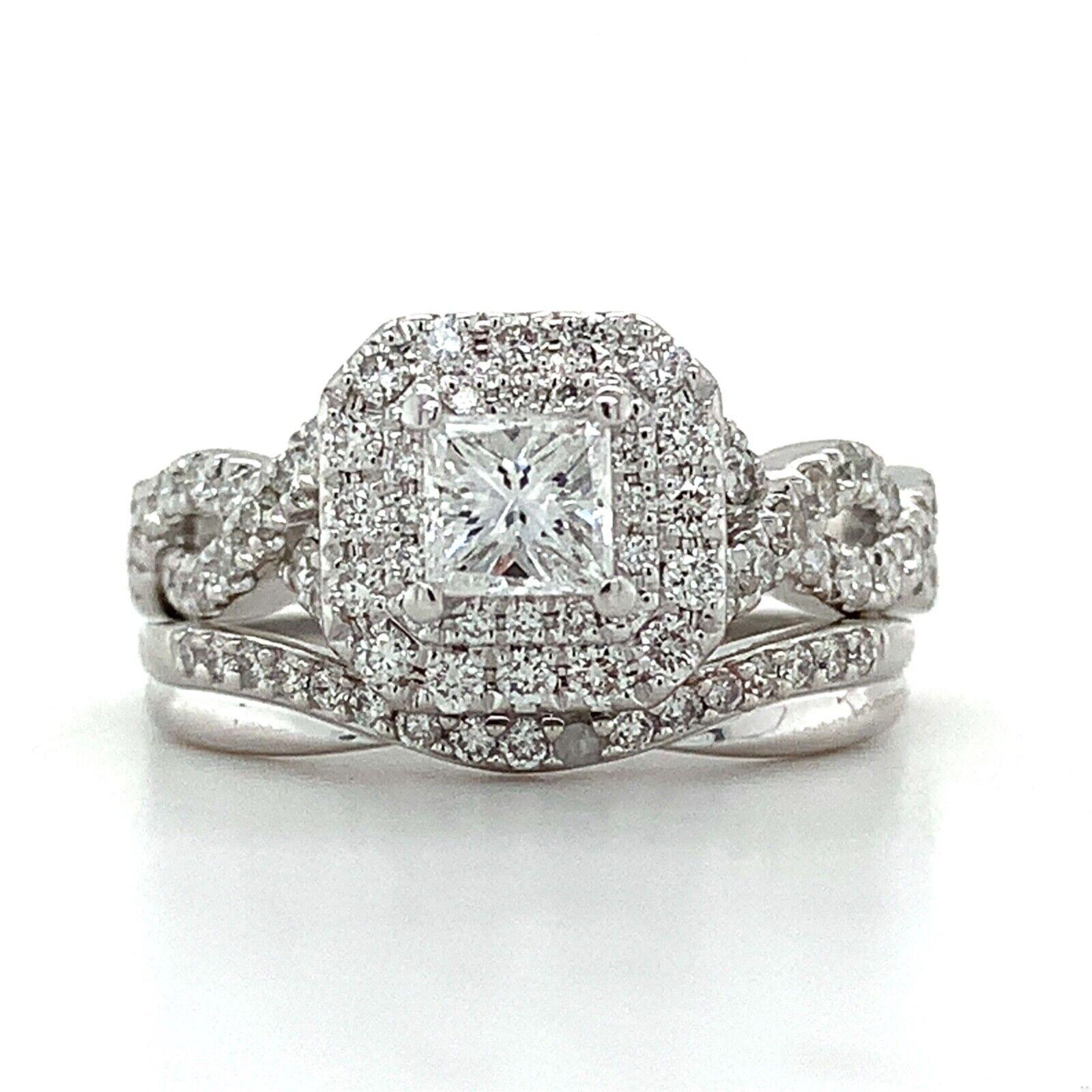 Vera Wang 14k White Gold Princess Cut Diamond & Round Sapphire Twist Shank Wedding Set Ring