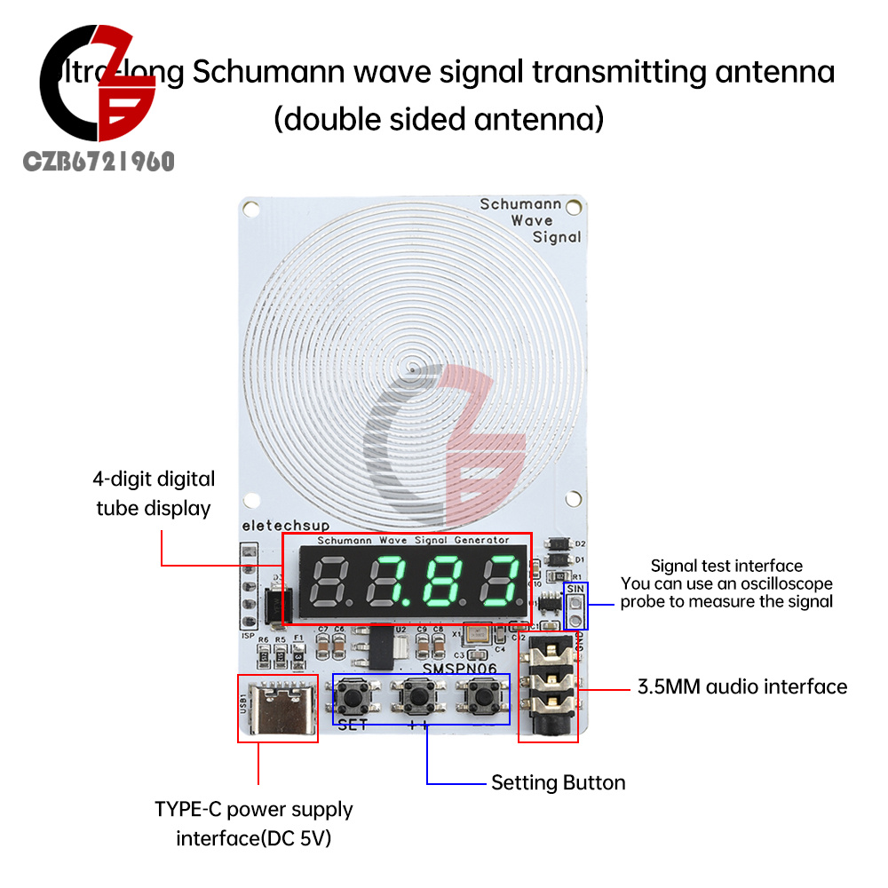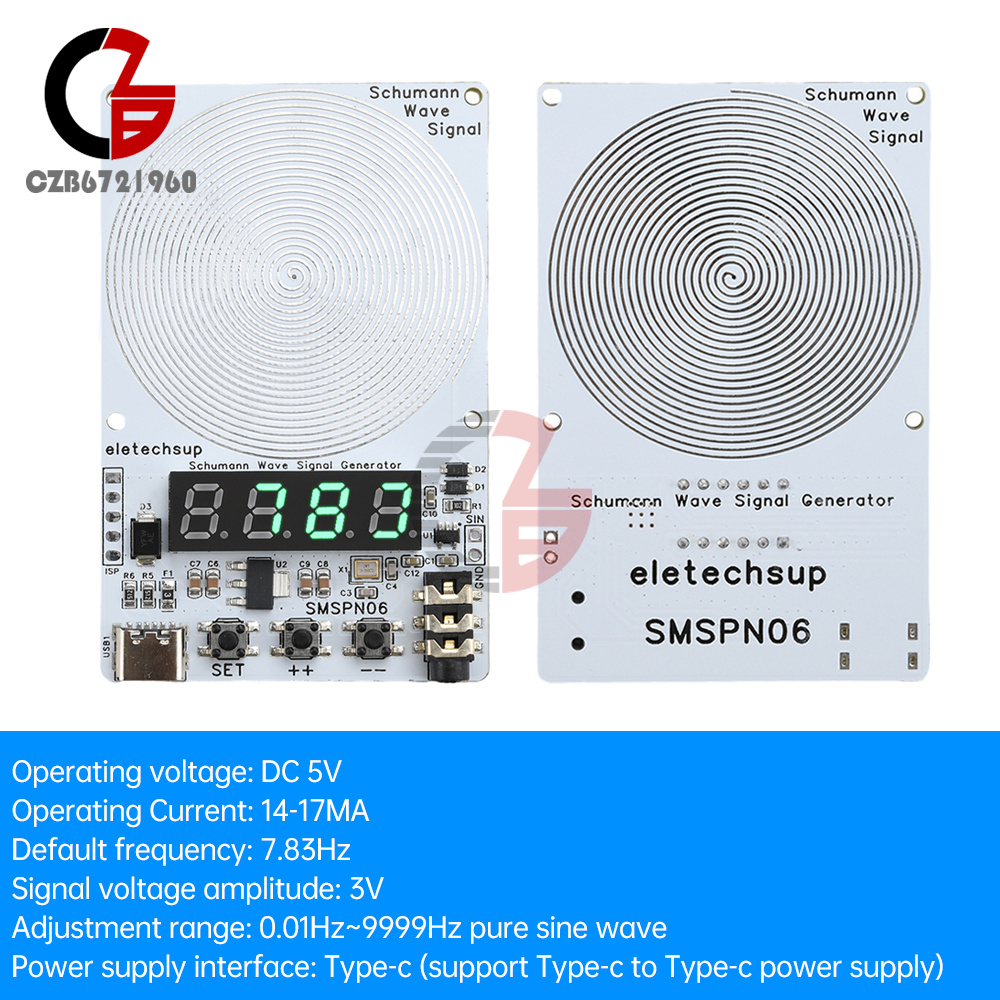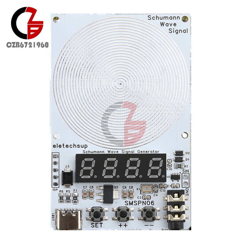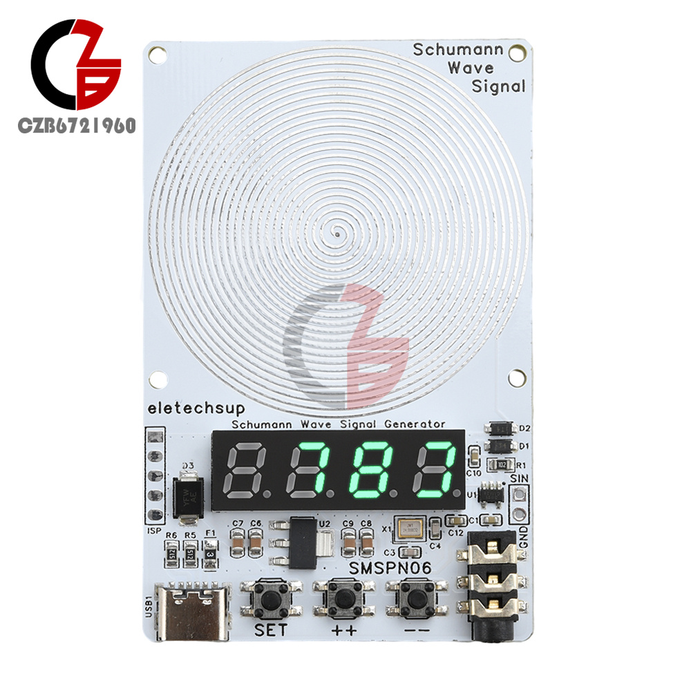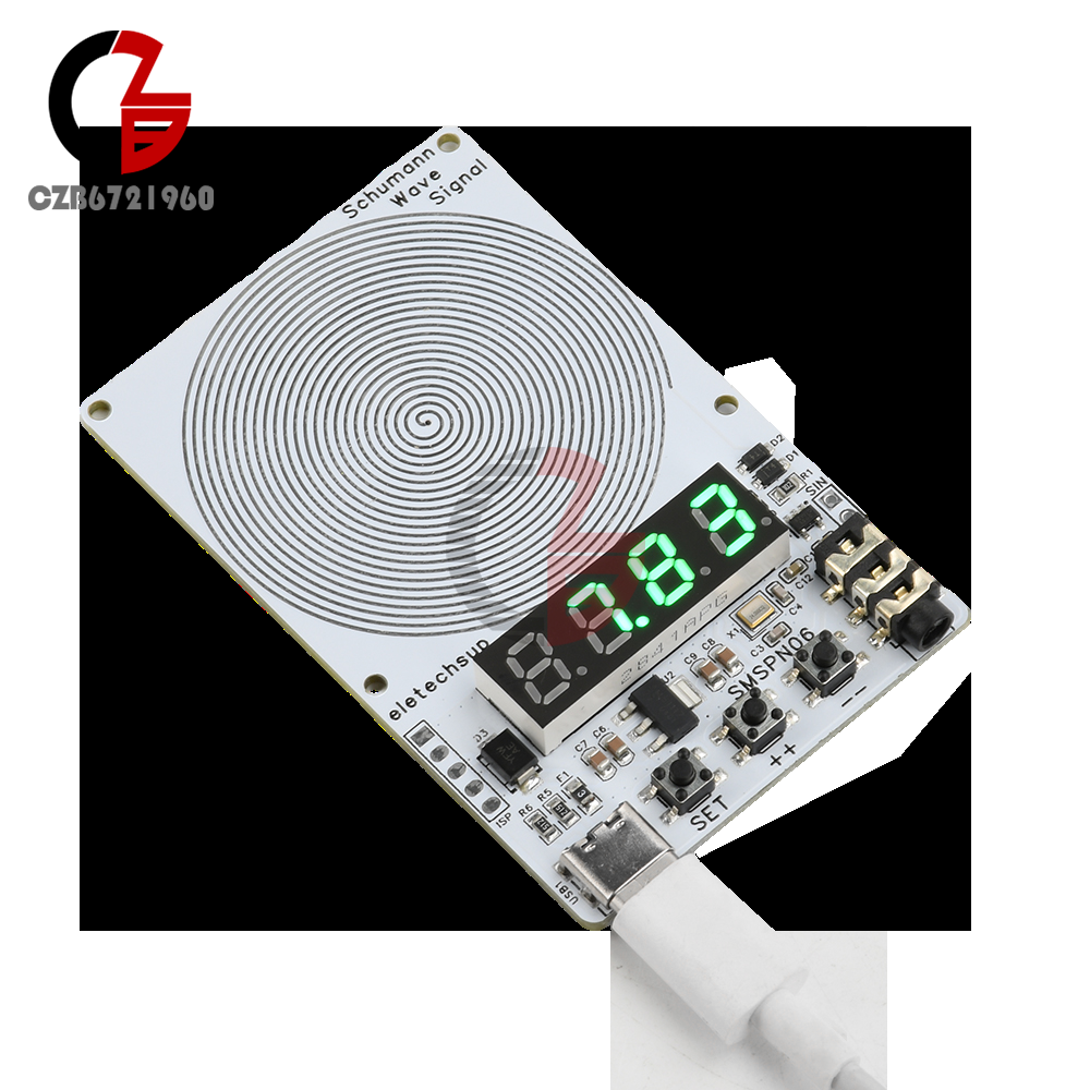 Usage: Connect the TYPE-C power supply, the digital tube displays 7.83, the board will automatically send out 7.83HZ Schumann waves