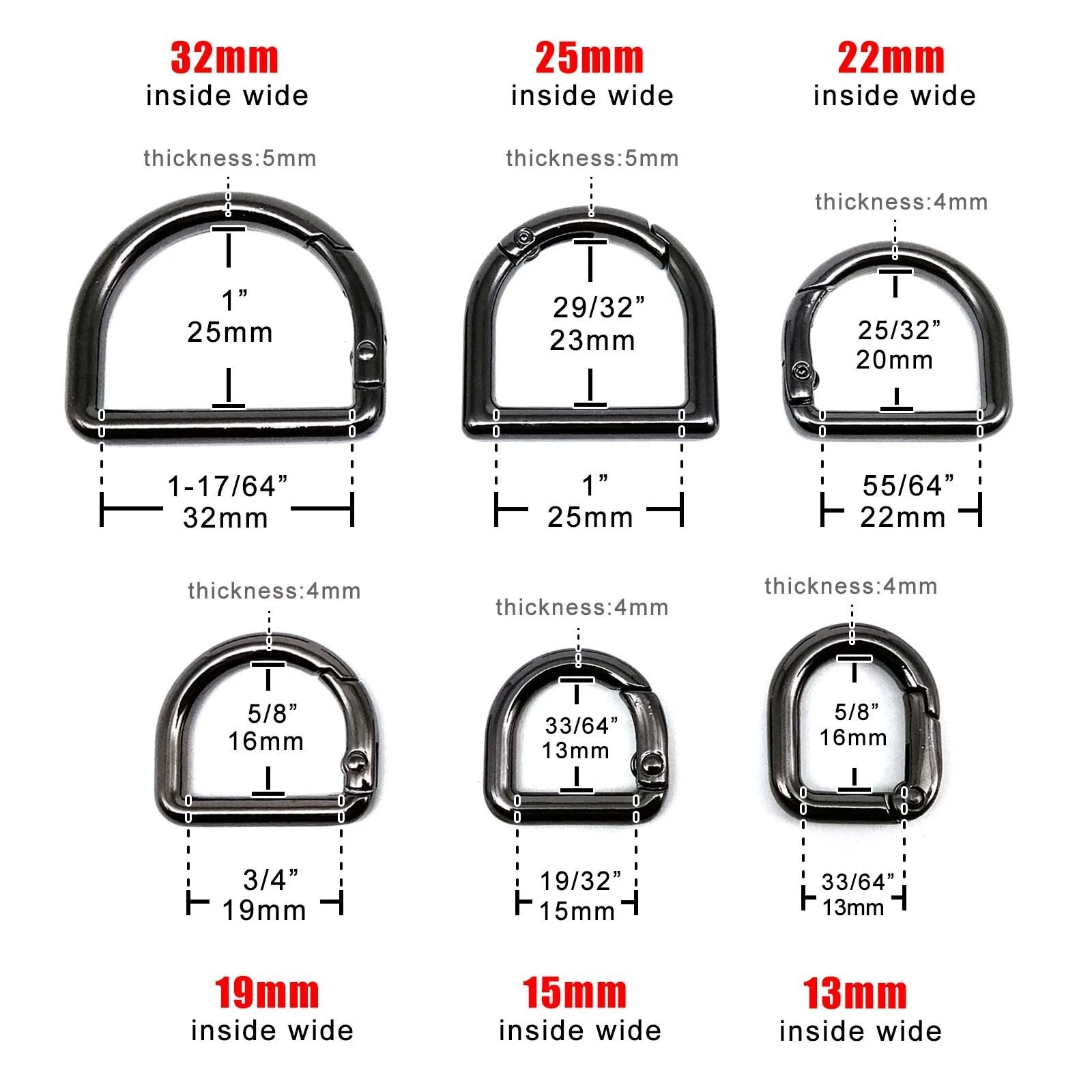 Inside wide 22mm Size: Inside wide: 55/64” (22mm) Inside high: 25/32”(20mm) Wire diameter: 5/32”(4mm)