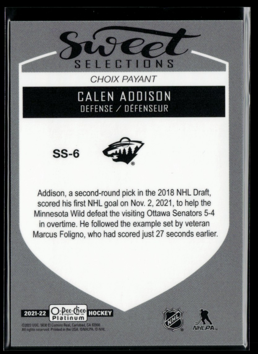 | 2021-22 O-Pee-Chee Platinum Sweet Selections #SS-6 Calen Addison RC |