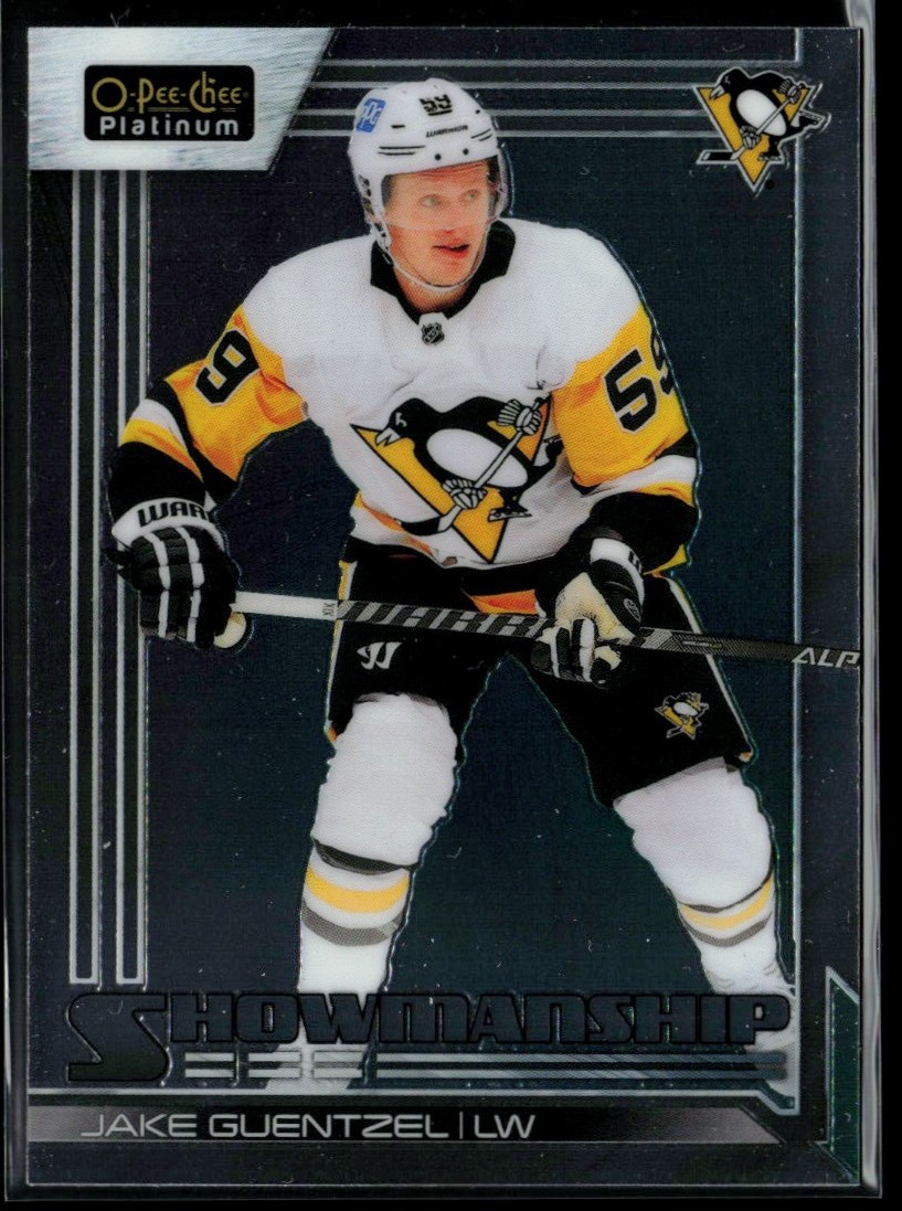 | Description: | Jake Guentzel | | Category: | Hockey | | Year: | 2023 | | Product: | O-Pee-Chee Platinum Showmanship | | Team: | Pittsburgh Penguins | | Card Number: | S-18 | | Dimensions: | 3½" x 2½" | | SKU: | HK A0024 R01 L (33) |