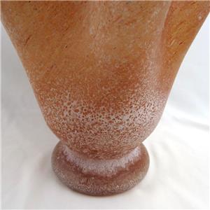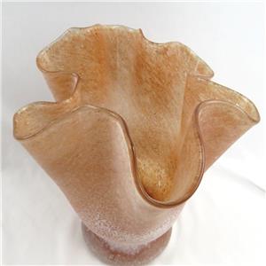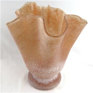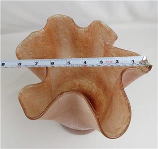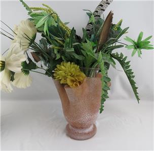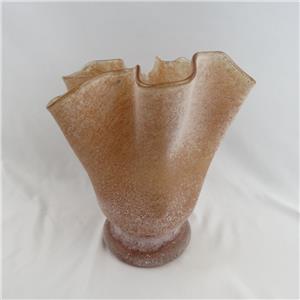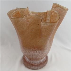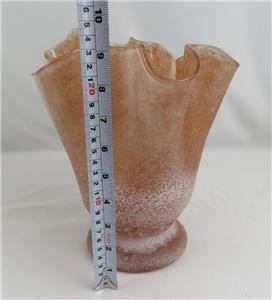 Large Glass Dusty Rose Textured Sculptural Wavy Lip Vase