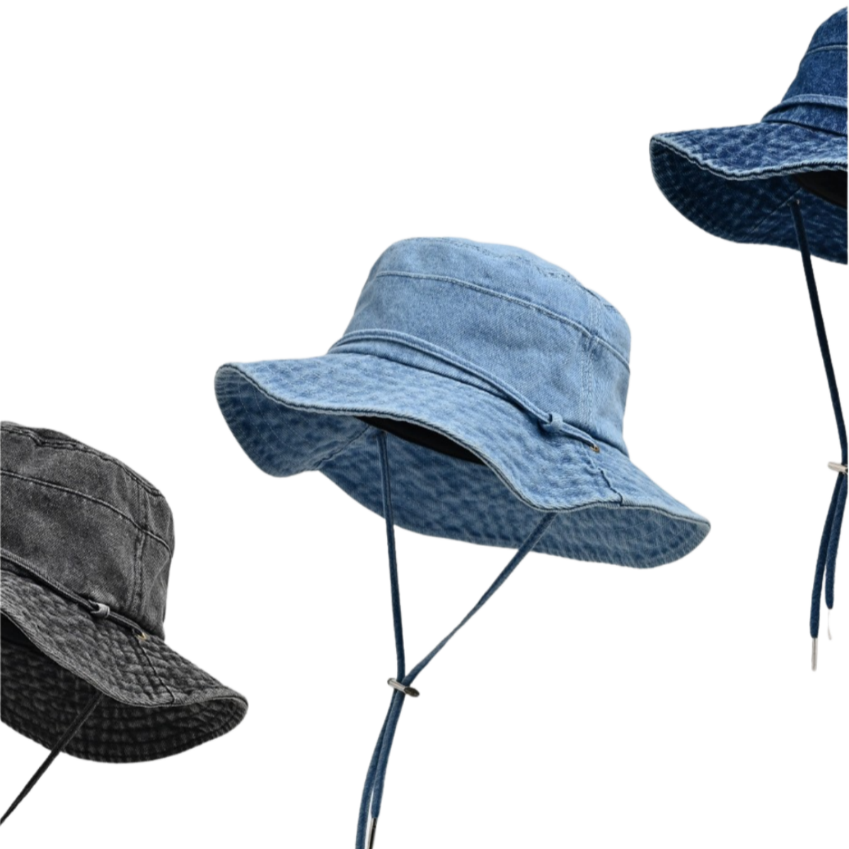 Bucket Hat for Women Men Wide Brim Sun Hat Packable Cotton Denim Fishing Cap