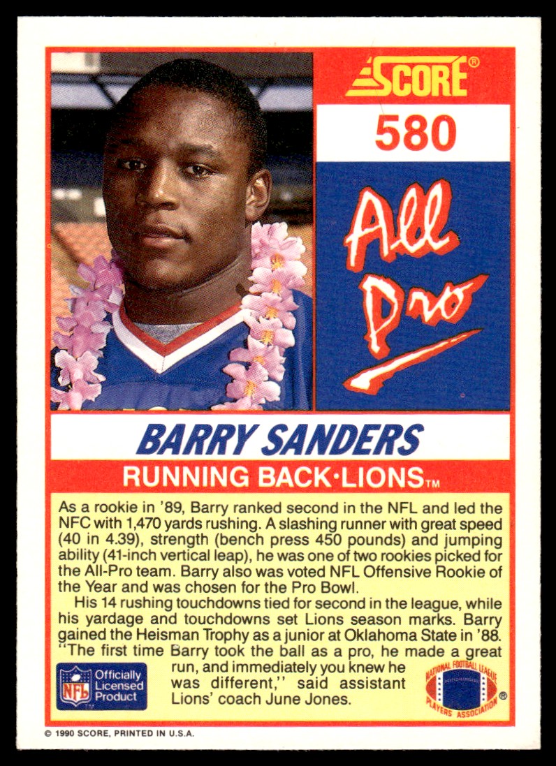 | 1990 Score Barry Sanders Detroit Lions #580 | ||||||||||||||||