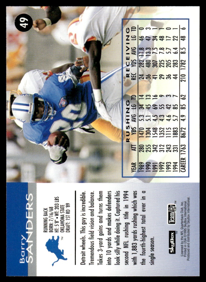 | 1995 SkyBox Impact Barry Sanders Detroit Lions #49 | ||||||||||||||||