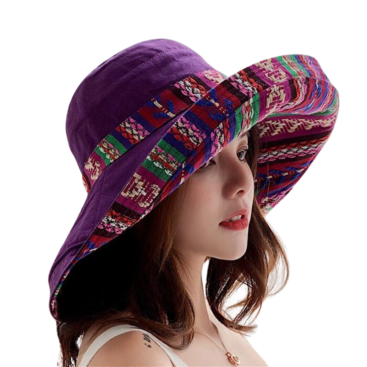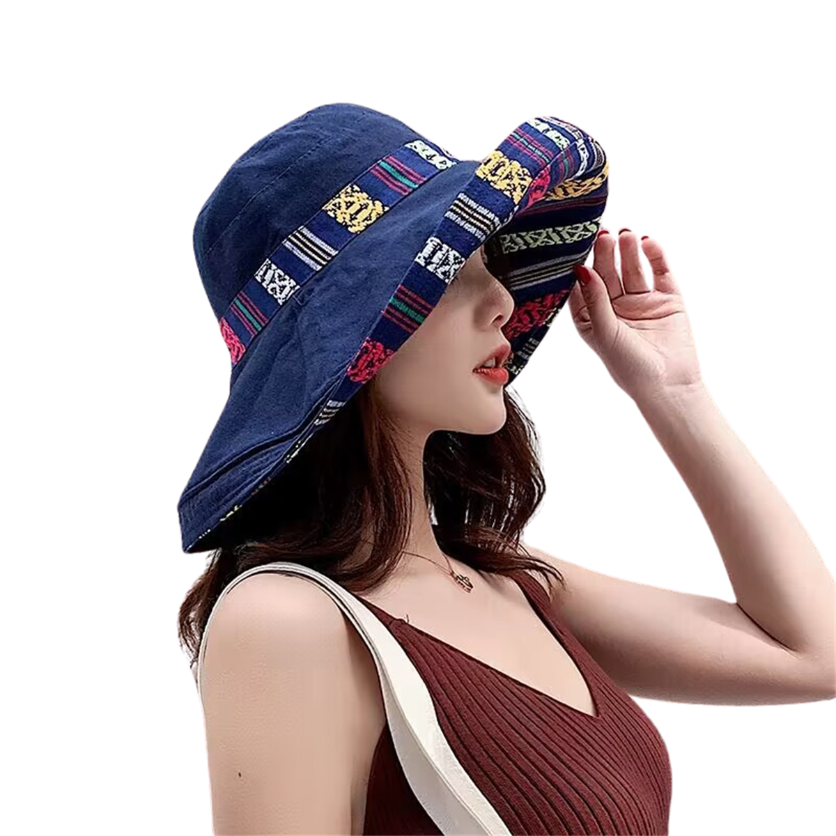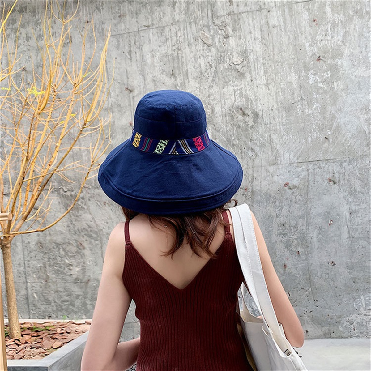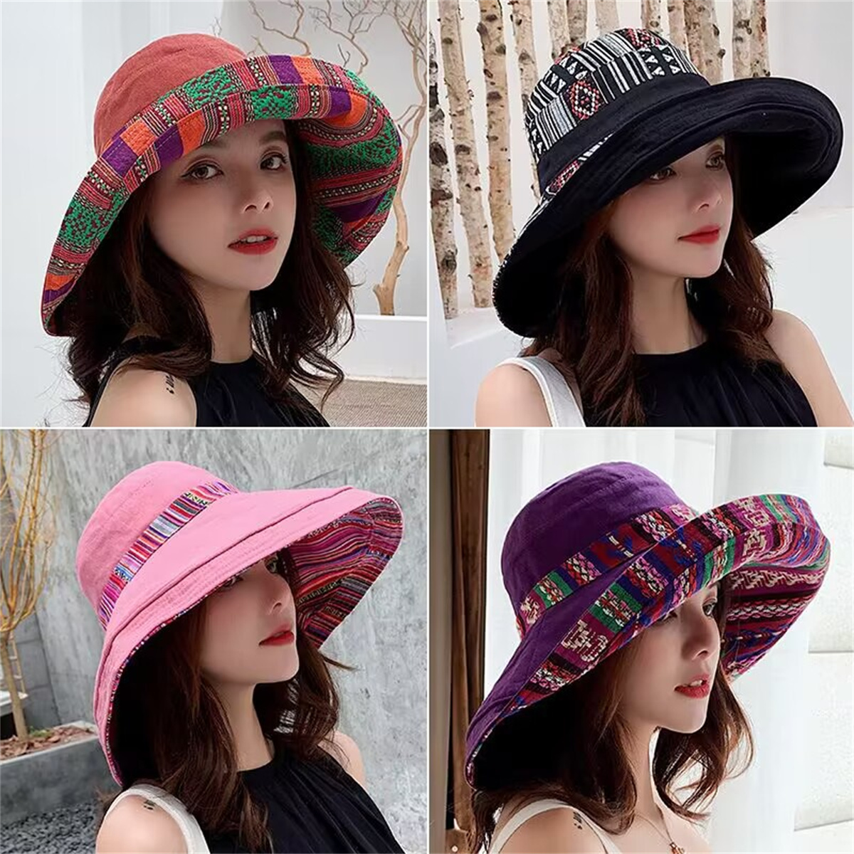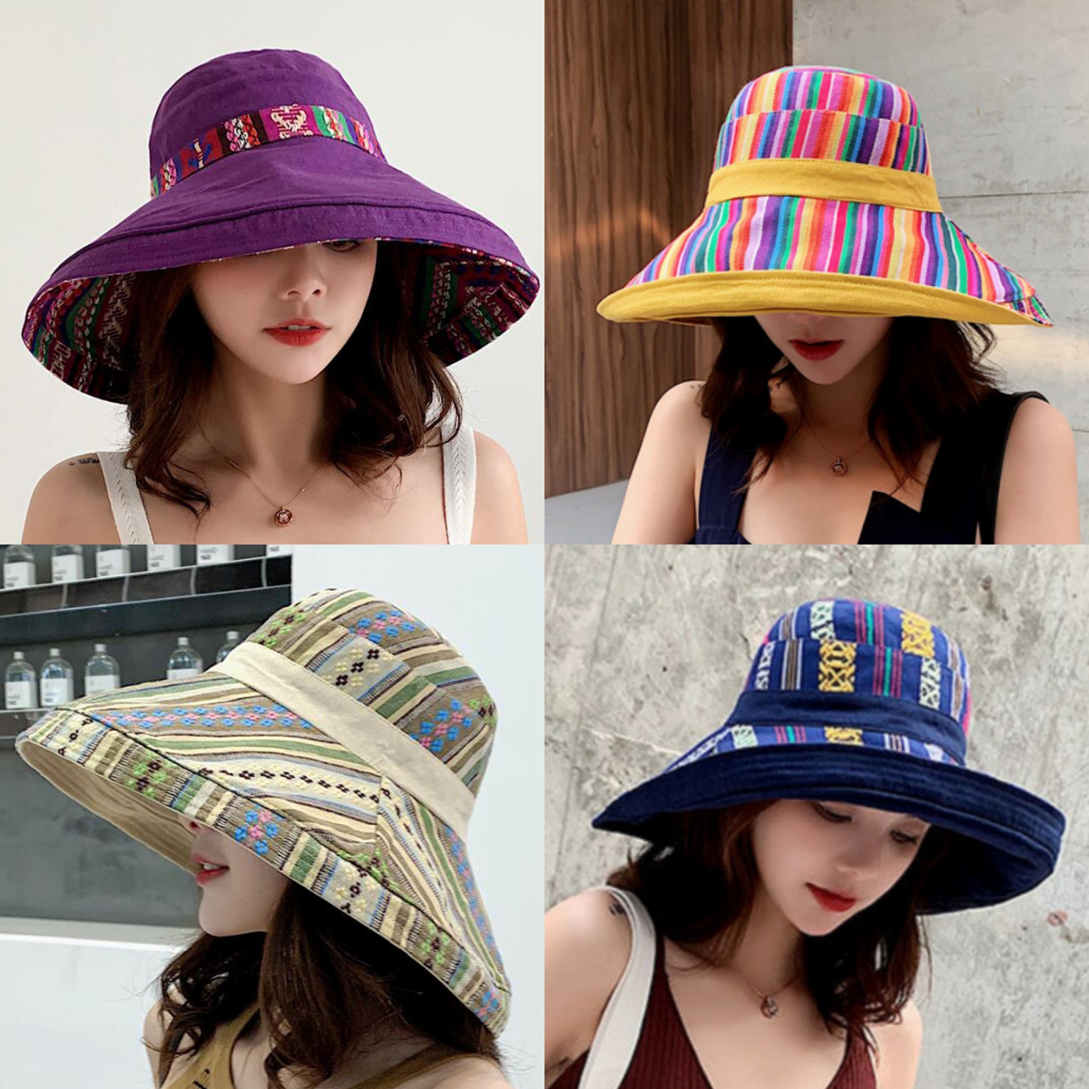 Women Cotton Wide Brim Sun Hats Summer UV Protection Reversible Bucket Hat