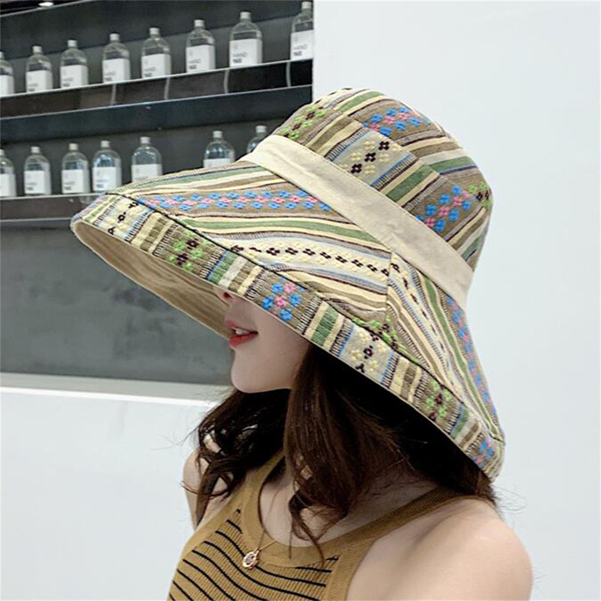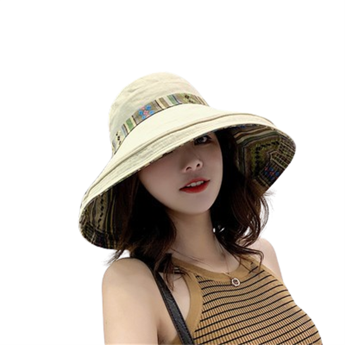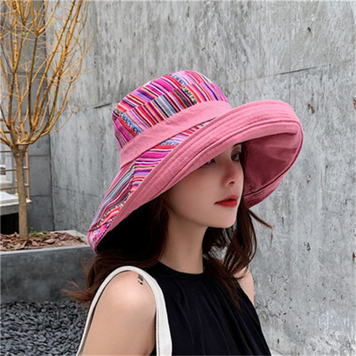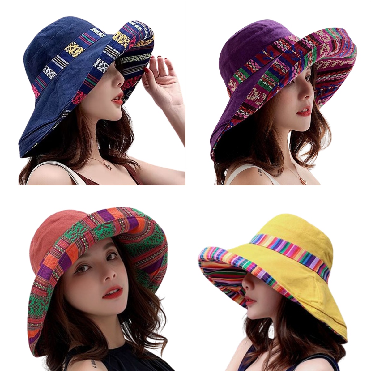 Women Cotton Wide Brim Sun Hats Summer UV Protection Reversible Bucket Hat