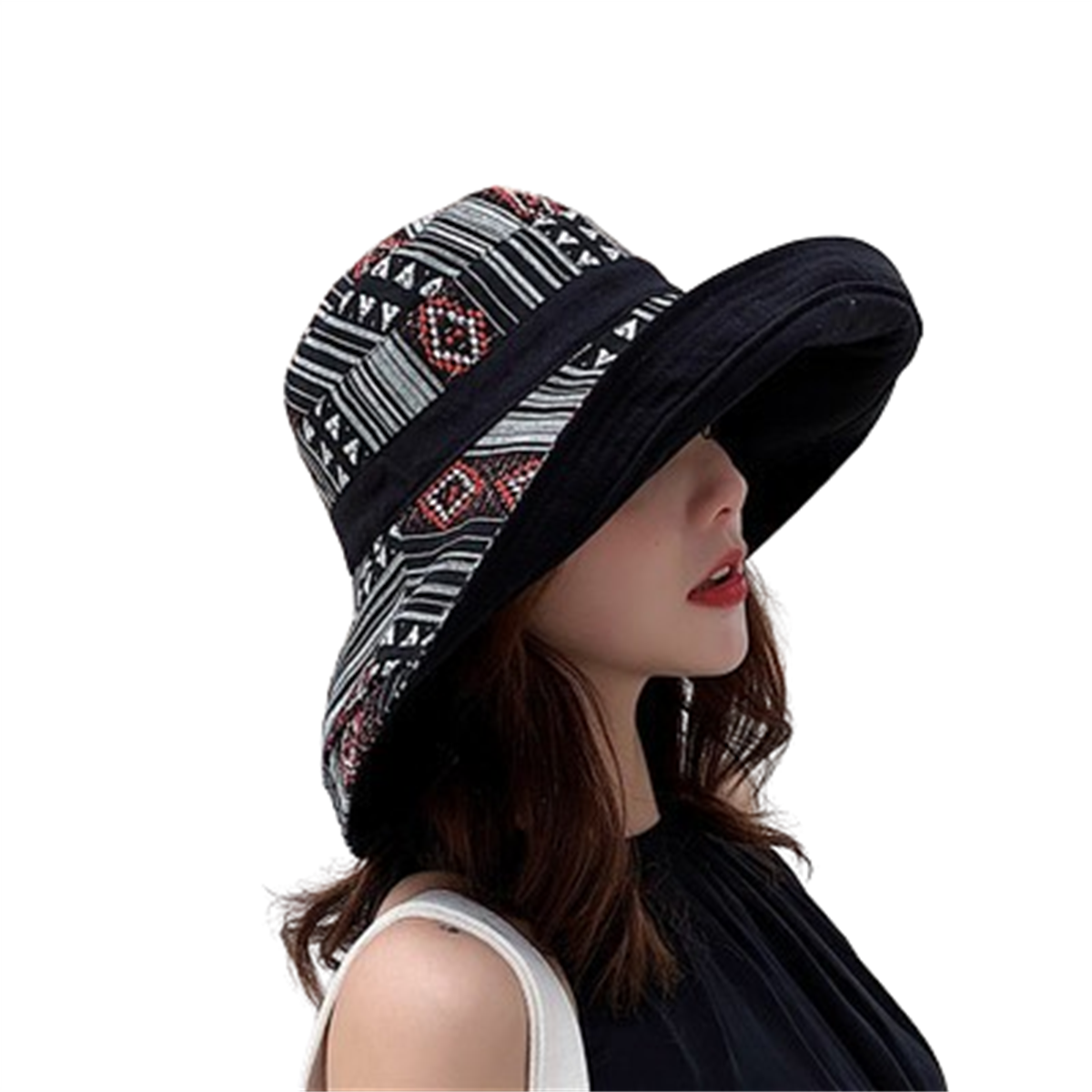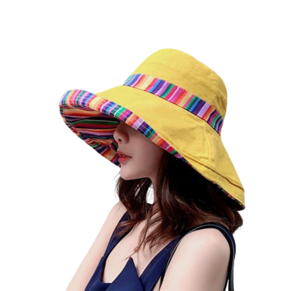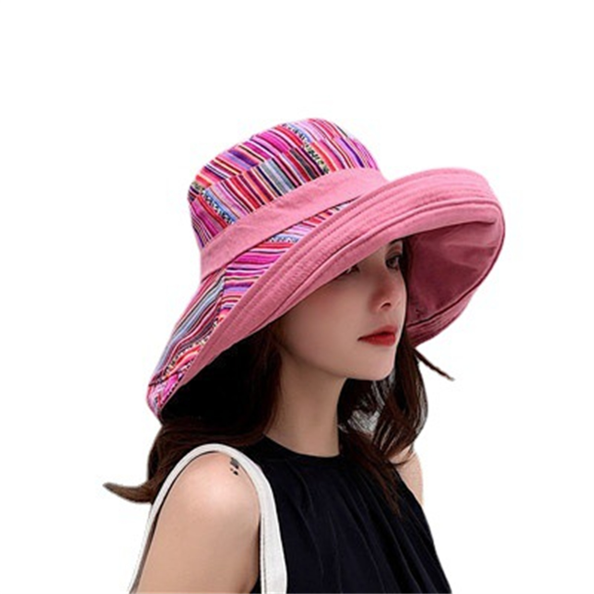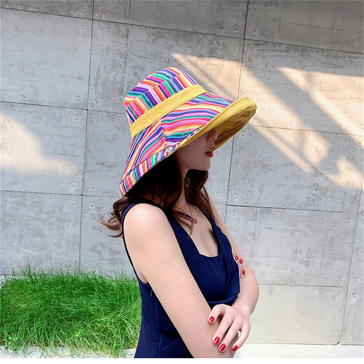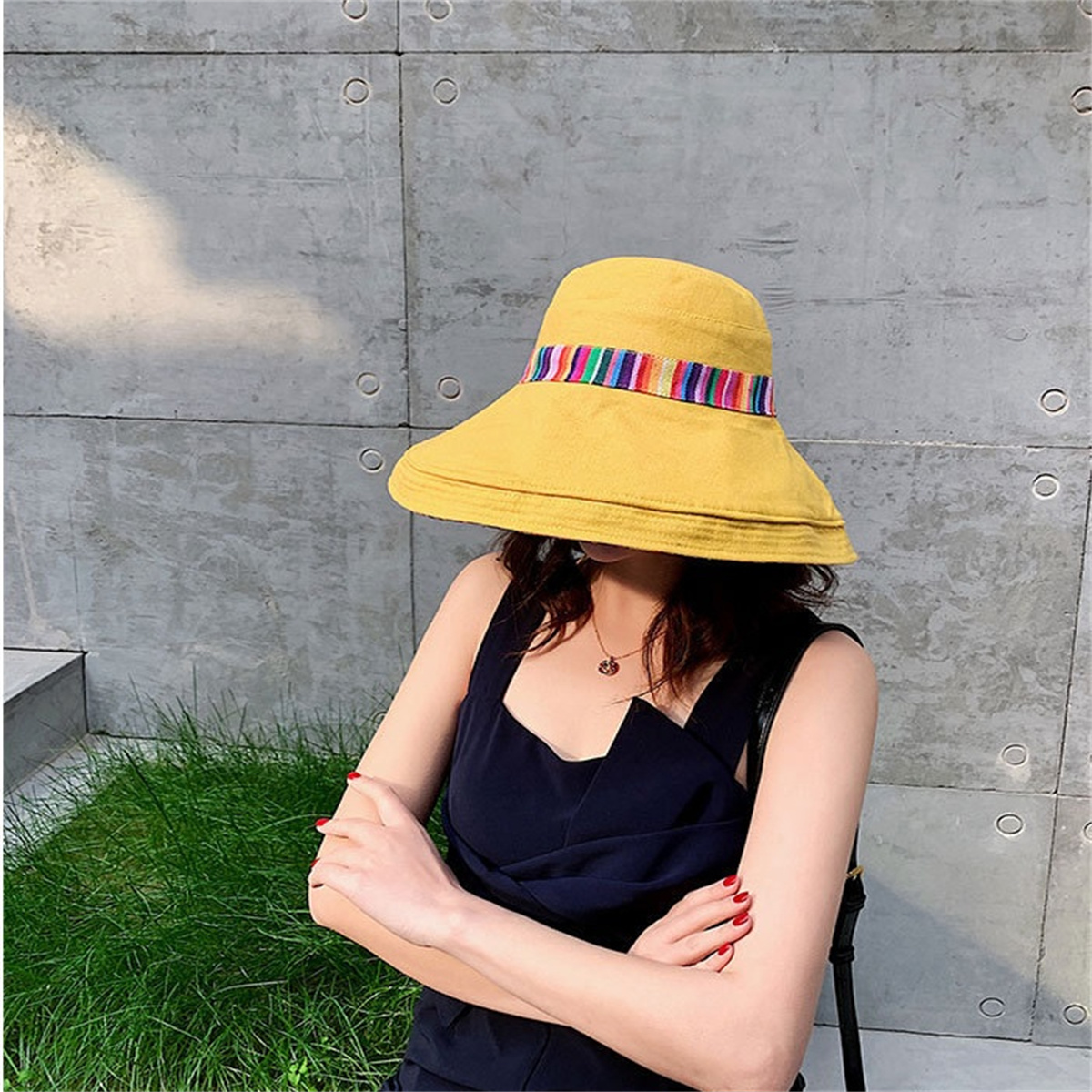 Women Cotton Wide Brim Sun Hats Summer UV Protection Reversible Bucket Hat