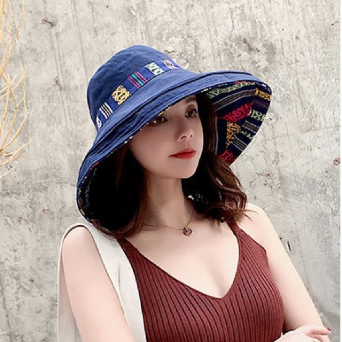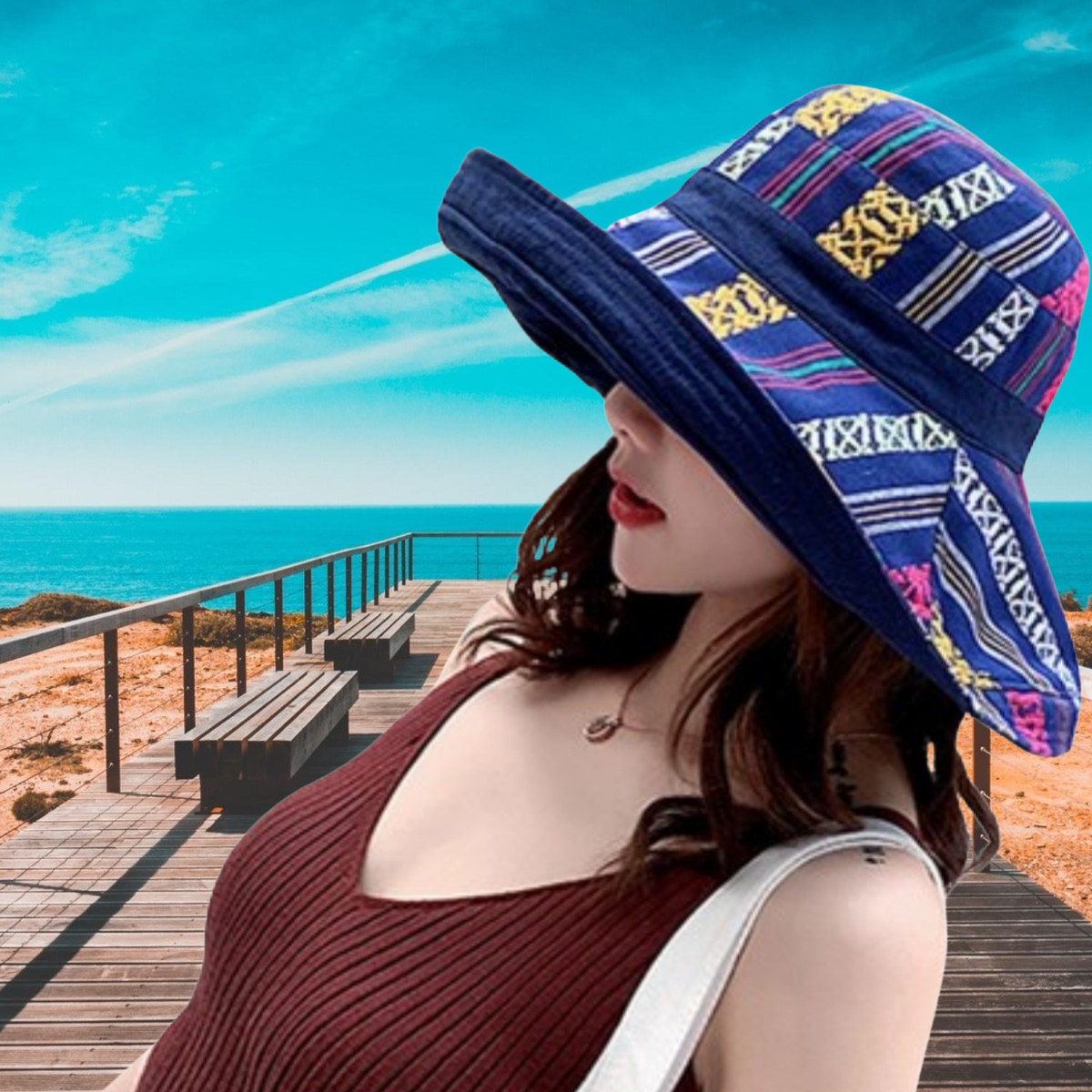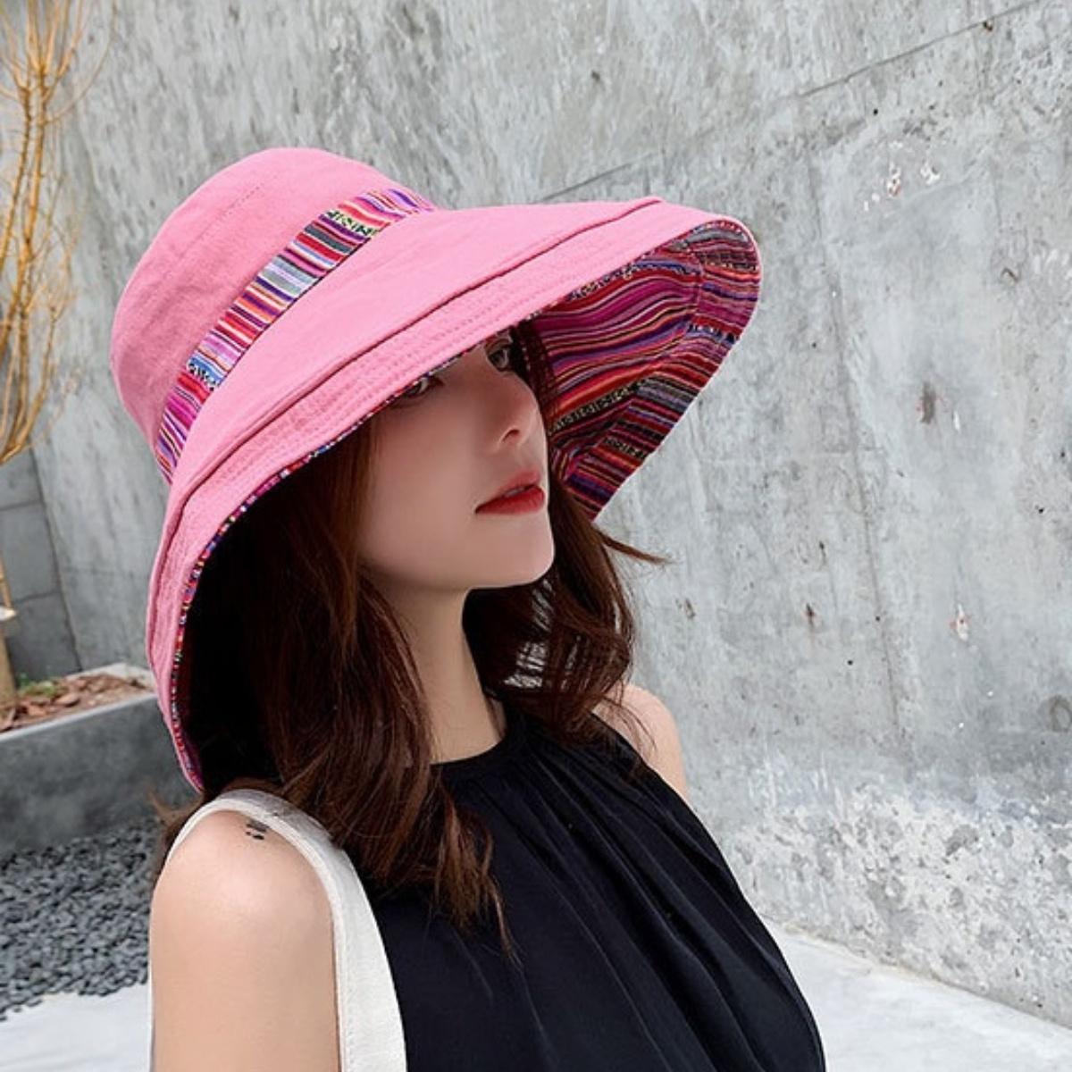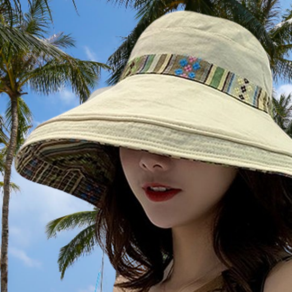 Women Cotton Wide Brim Sun Hats Summer UV Protection Reversible Bucket Hat