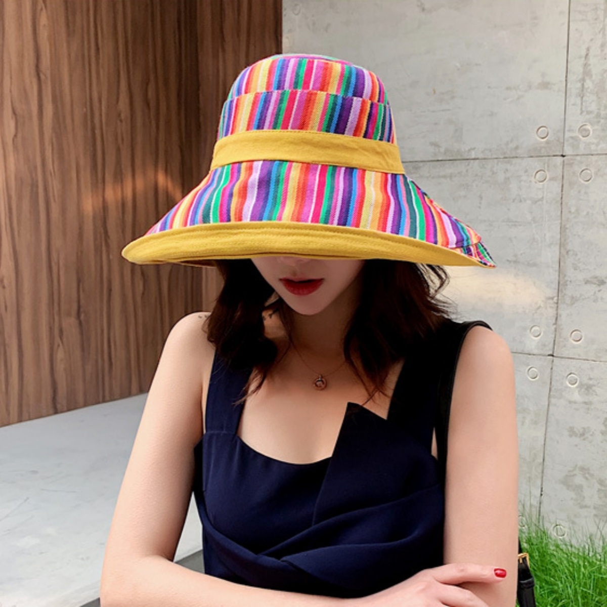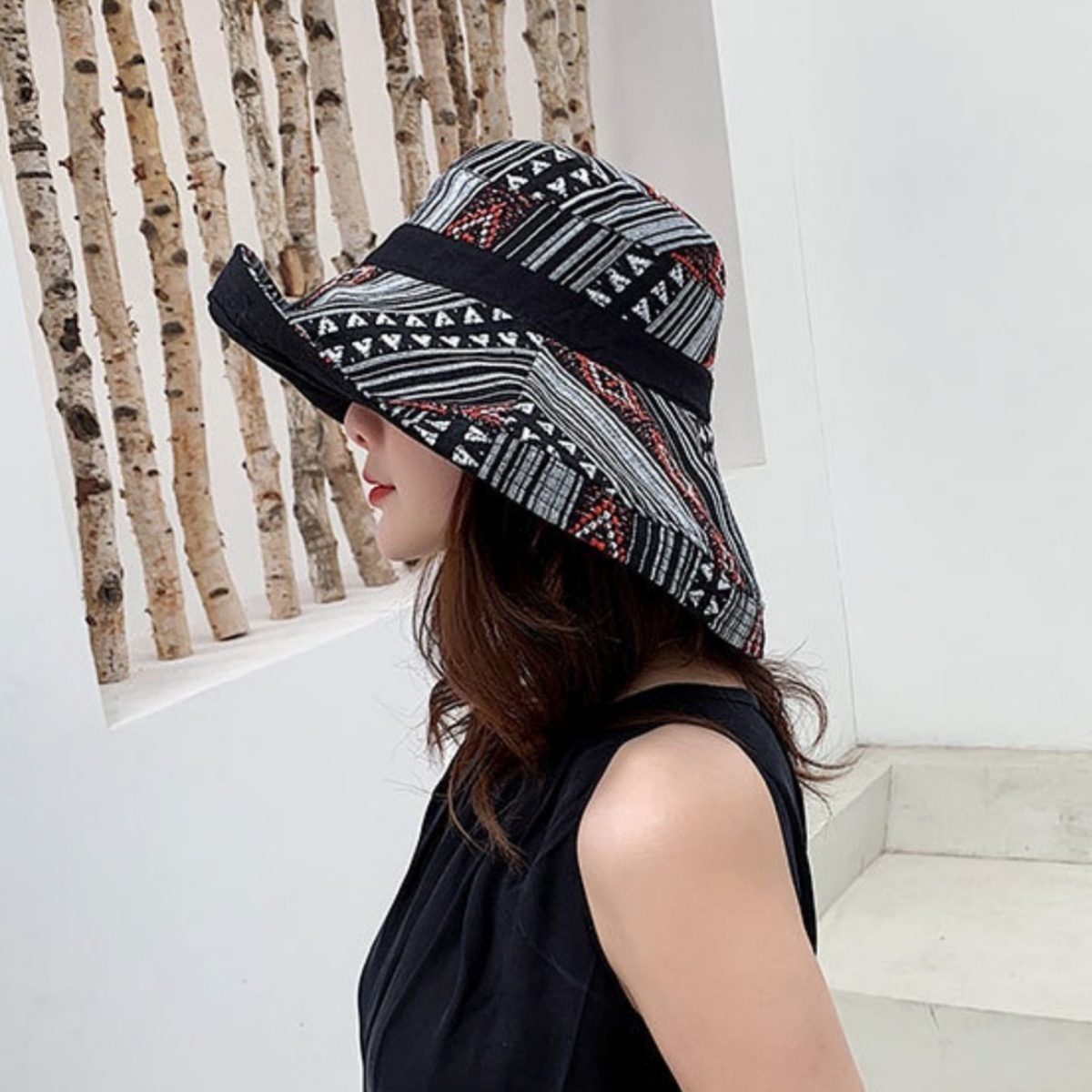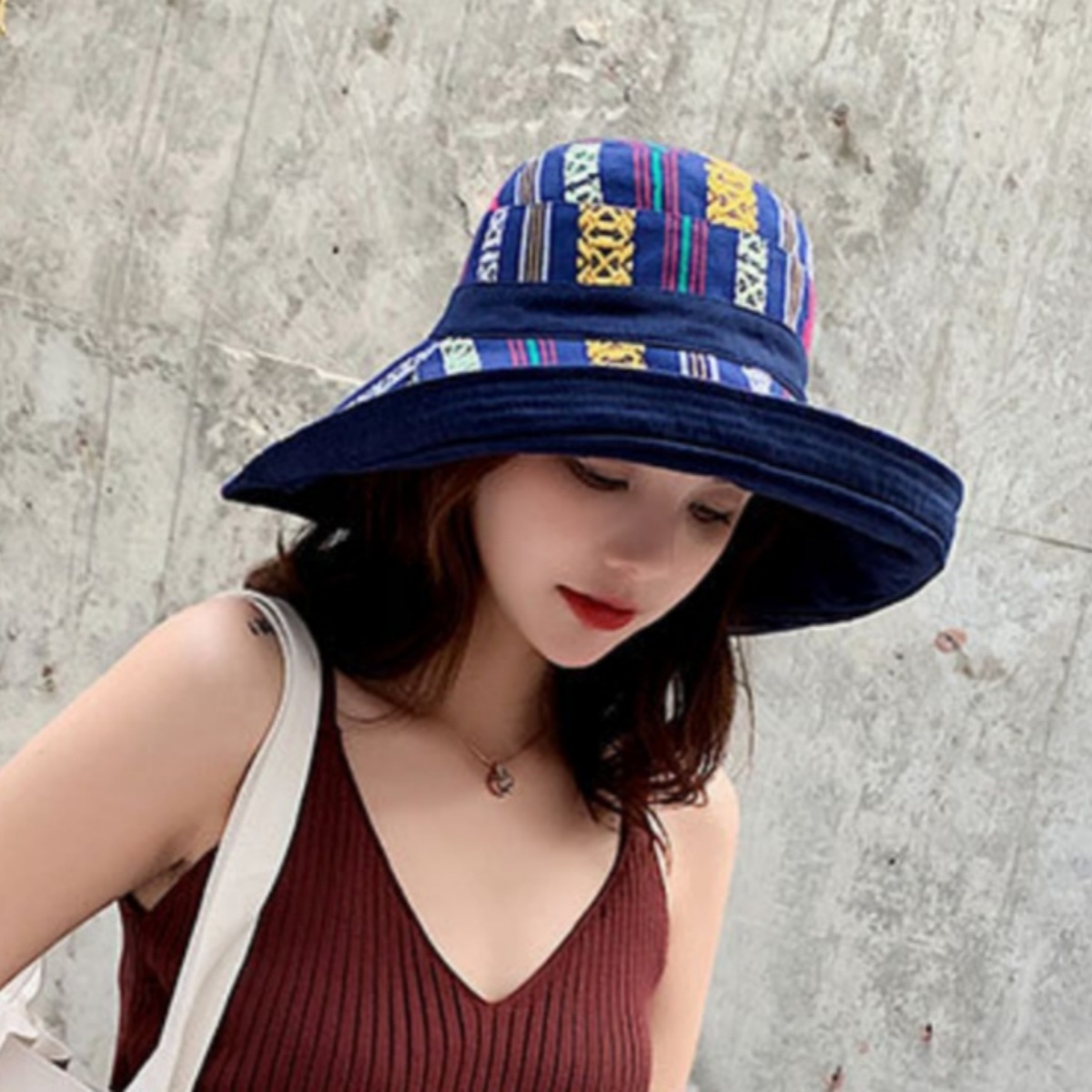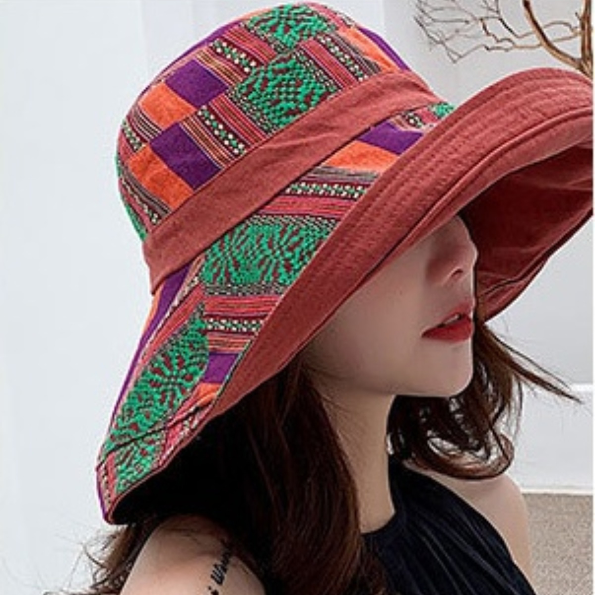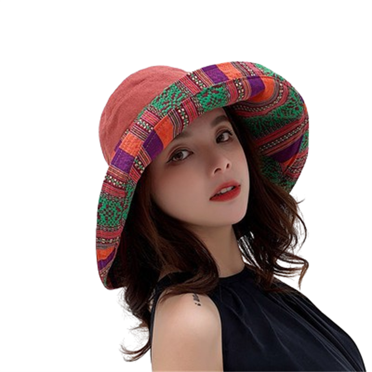 Women Cotton Wide Brim Sun Hats Summer UV Protection Reversible Bucket Hat