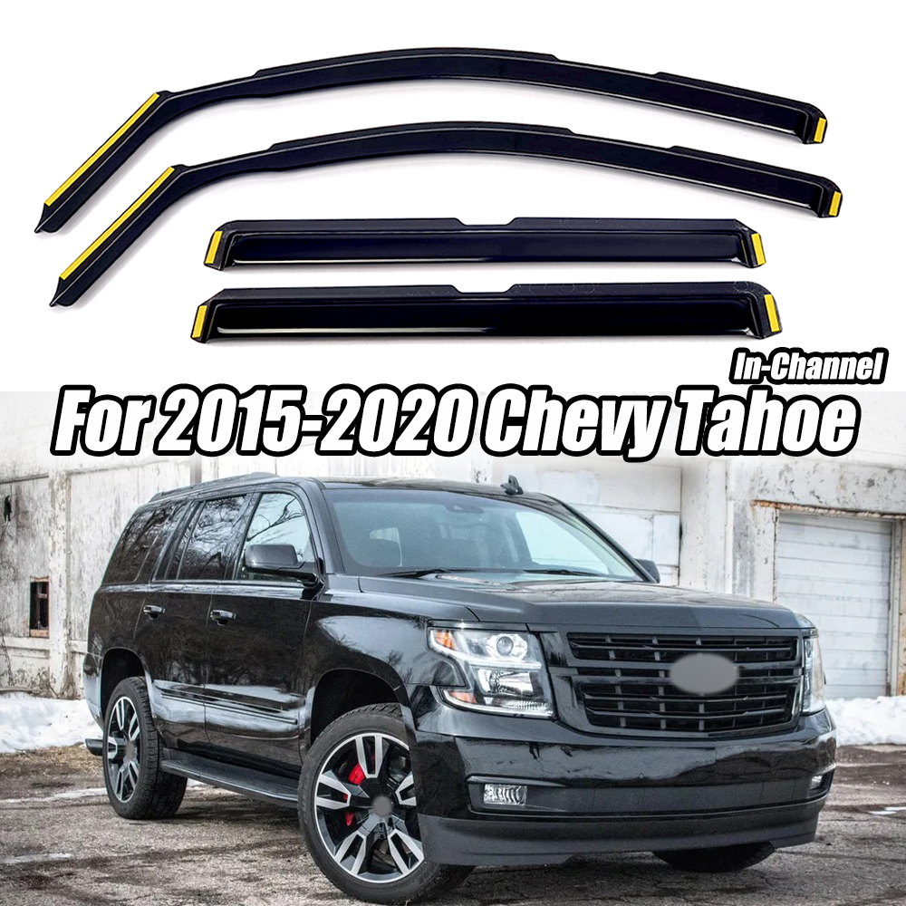 Smoke In-Channel Wind Deflector, Rain Guard, Window Visor, Vent Deflector For 2015-2020 Chevy Tahoe, GMC Yukon