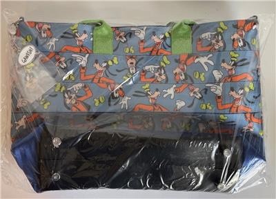 This Tote has a topsy turvy print featuring Disney’s Goofy blocked with Cobalt belts on the bottom and is accented with Apple handles after Goofy’s signature hat. With a bright green liner covered in Goofy’s iconic faces and expressions. Finished with a double-sided charm so you can stay silly wherever you go.