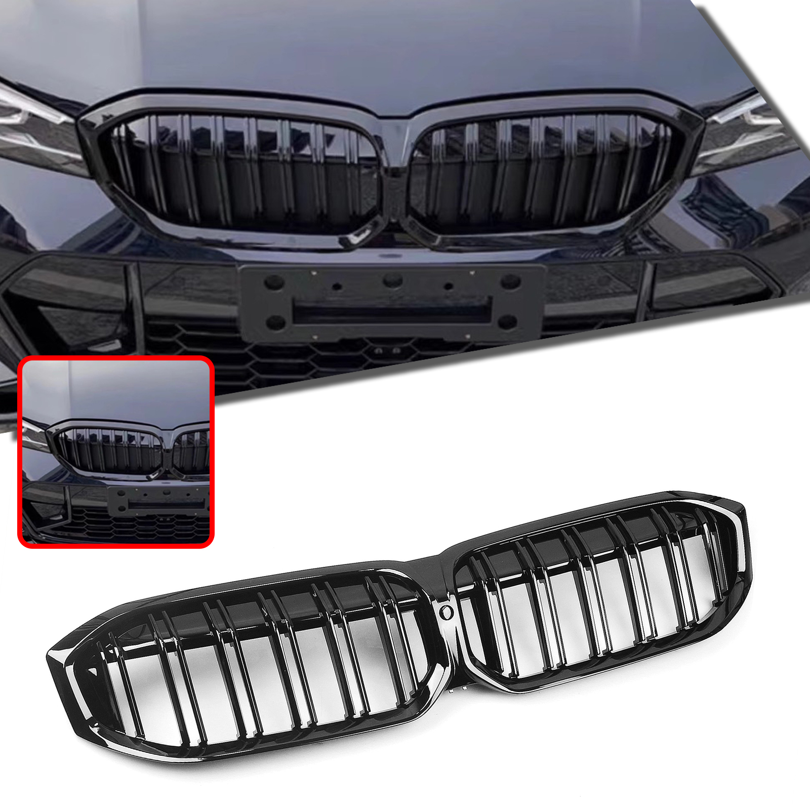 Package Including : 1PCS/1SET Front Bumper Kidney Grille Double Line (With Camera Hole)