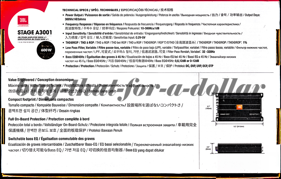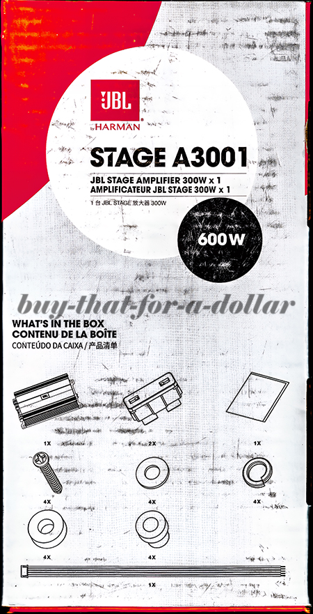 If you need some bass power but your wallet's a little weak, check out JBL's Stage A3001 subwoofer amplifier. This potent little JBL amp sends up to 300 watts RMS to your sub, making your drive more exciting as it fills your ride with low-frequency punch.