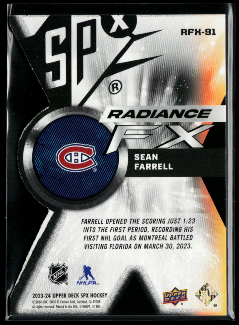 | 2023-24 SPx Radiance FX #RFX-91 Sean Farrell RC 888/949 |