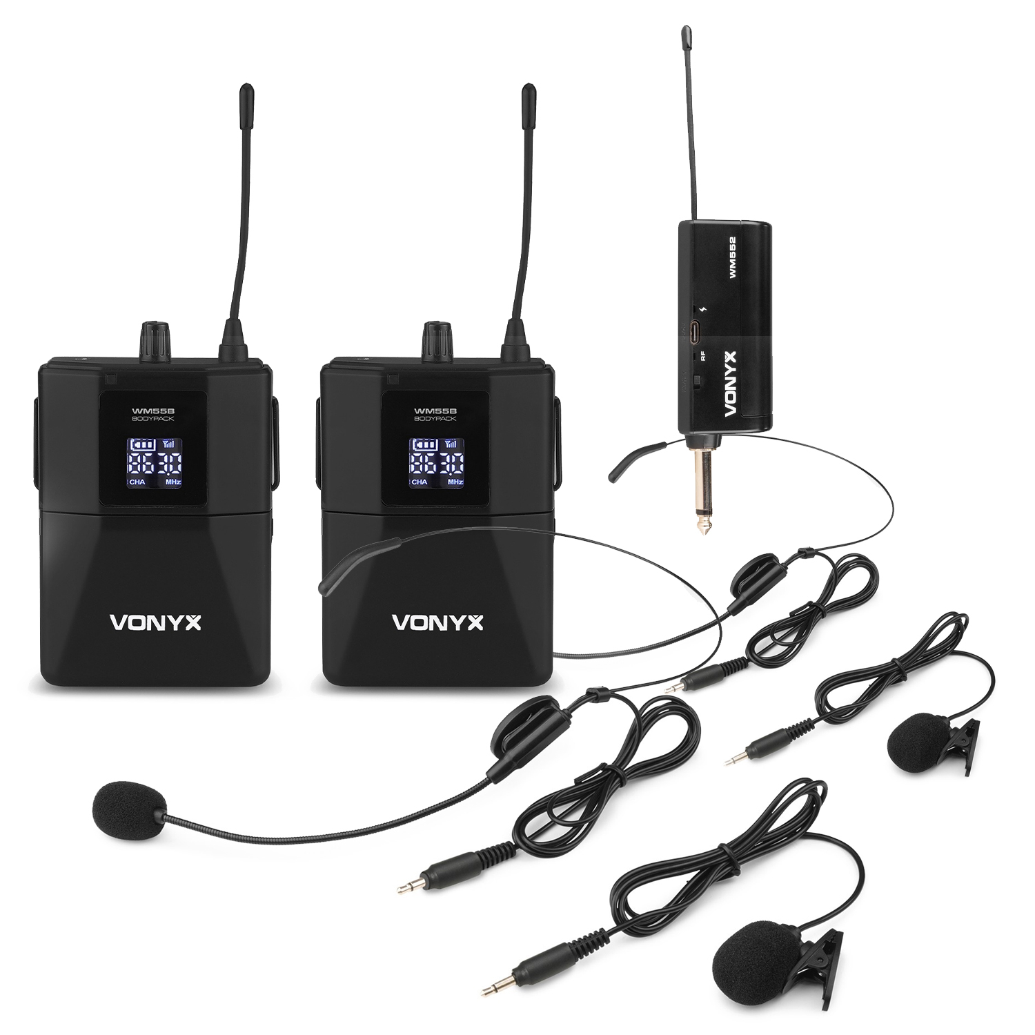 Vonyx WM552B Wireless Headset Microphone System with Dual UHF Technology