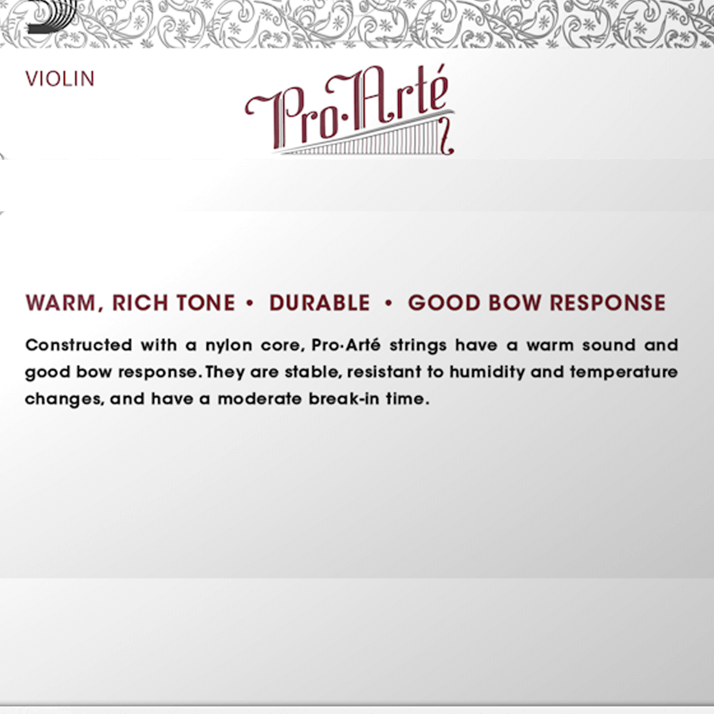 •Pro-Arte synthetic core violin strings have a warm, mellow tone.