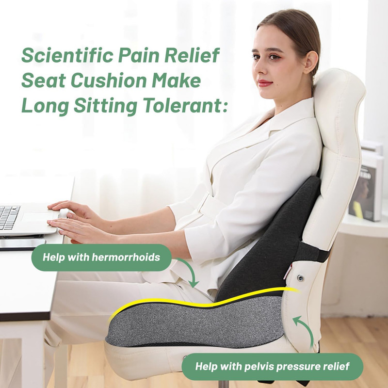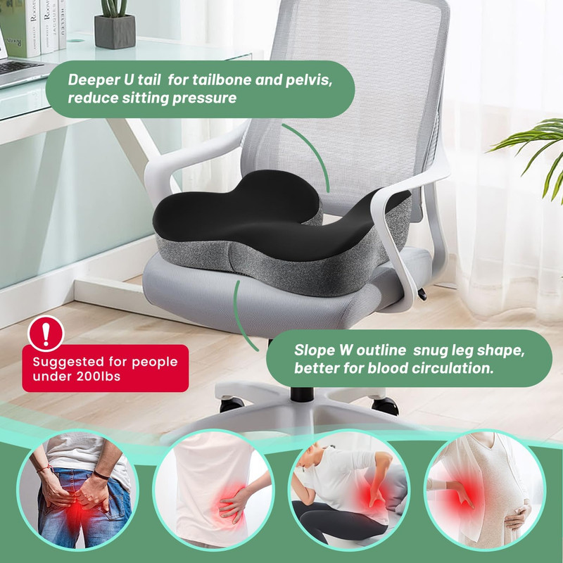 Our seat cushion for lower back pain relief sees the proper curved lines around it to fully fit your butt and thighs, give your lower body a comfortable and sufficient support. Its 3D U-shape float your tailbone in the air to reduce the pressure for the body weight.