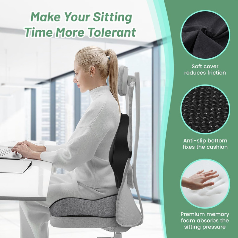 Do you always feel great pressure on tailbone and numb on feet after sitting for long period? We all know walk around time to time is the best approach, but sometimes we just too mindful on what we’re doing to remember this. When we finish our work, our back is sore and hips are stressful and painful. Our seat cushion is designed to improve your prolonged sitting experience and drag you out of the pain.