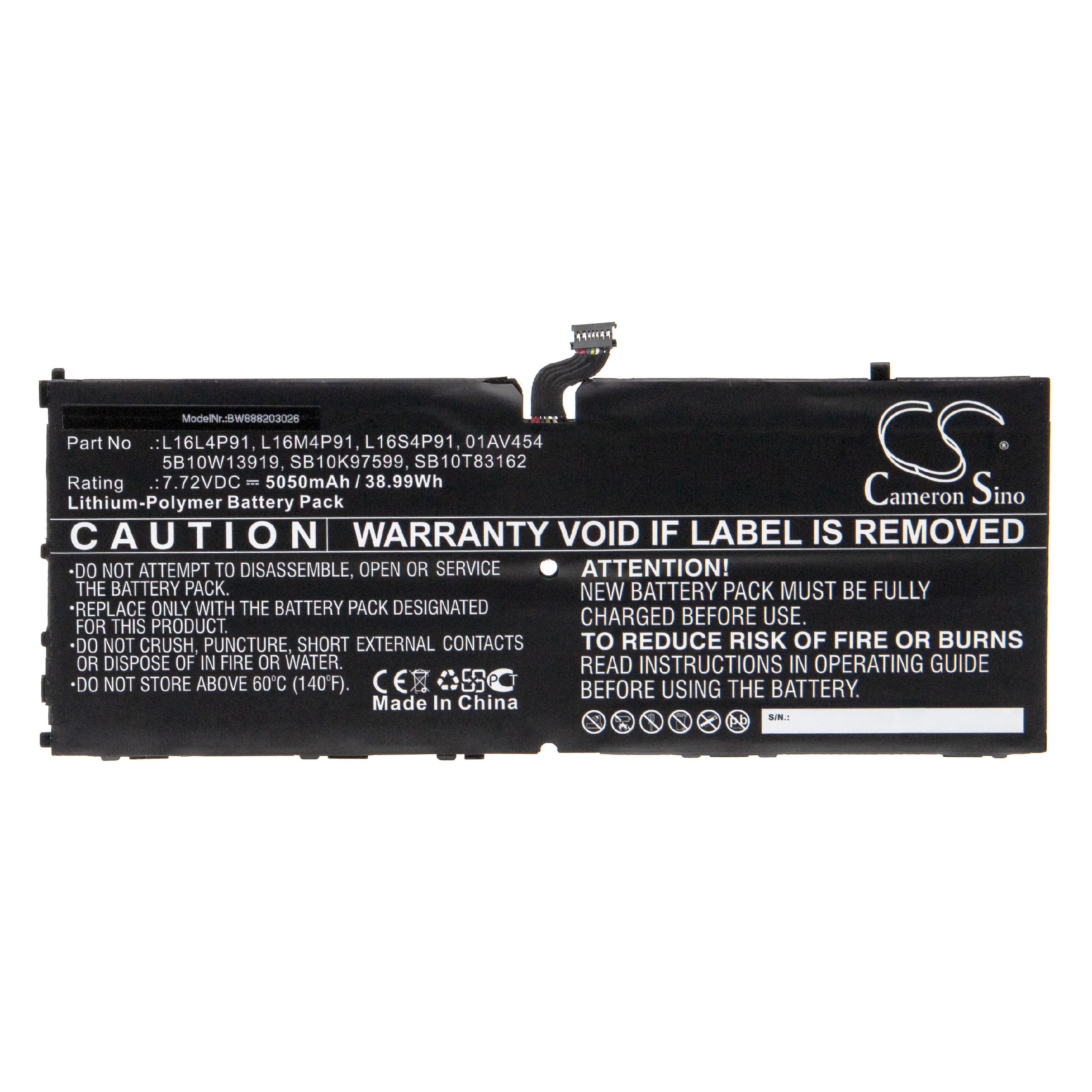 vhbw leistungsfähiger Akku passend für Lenovo L16M4P91, L16S4P91, 01AV454, 5B10W13919, L16L4P91 Akku für Tablet (Li-Polymer, 5050mAh, 7,72V)