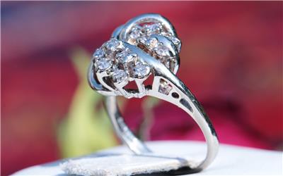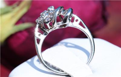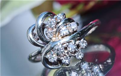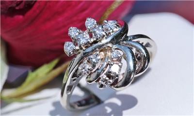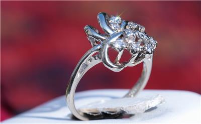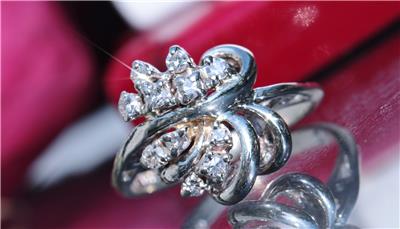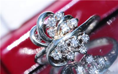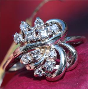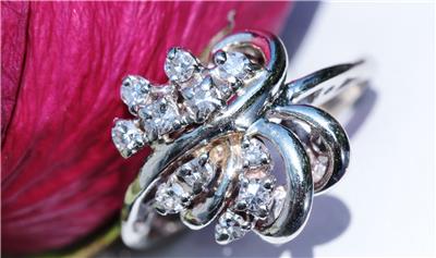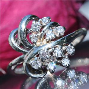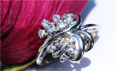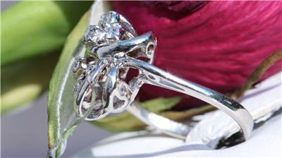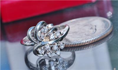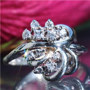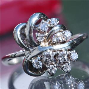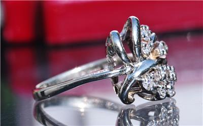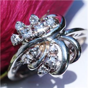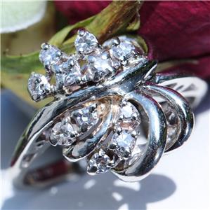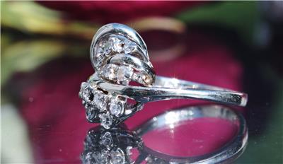 Radiant Handmade Vintage 14k White Gold 0.25ct Natural Diamond size: 4 Swirl Ring, 3.03 grams