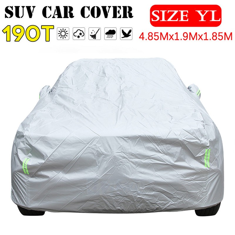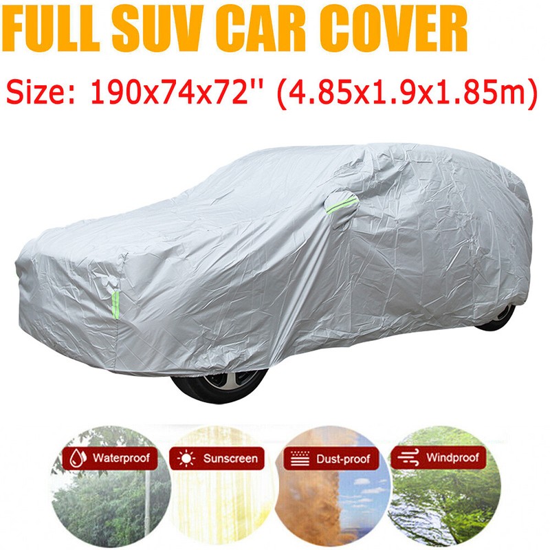 Specifications: Type: Car Cover Condition: 100% Brand New Material: High Quality Polyester Taffeta (Water repellent) Color: Gray Size(LxWxH): (YL) Approx. 190*74*72'' inch (4.85x1.9x1.85m) Occasion: Outdoor (Street parking as well) & Indoor Features: - The automobile universal clothing is suitable for car sunscreen and rain protection. - Easy to use and the installation does not need tools. The lateral flap is designed and fixed to prevent shedding. -