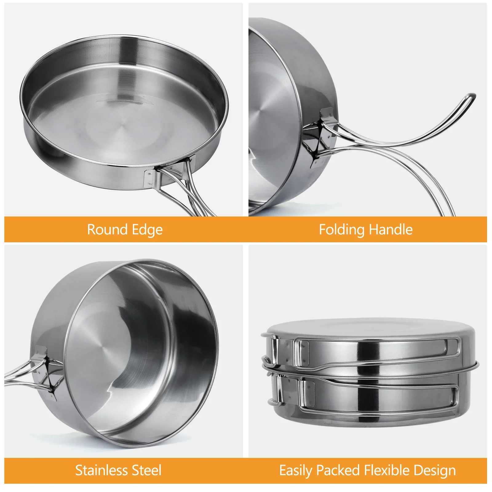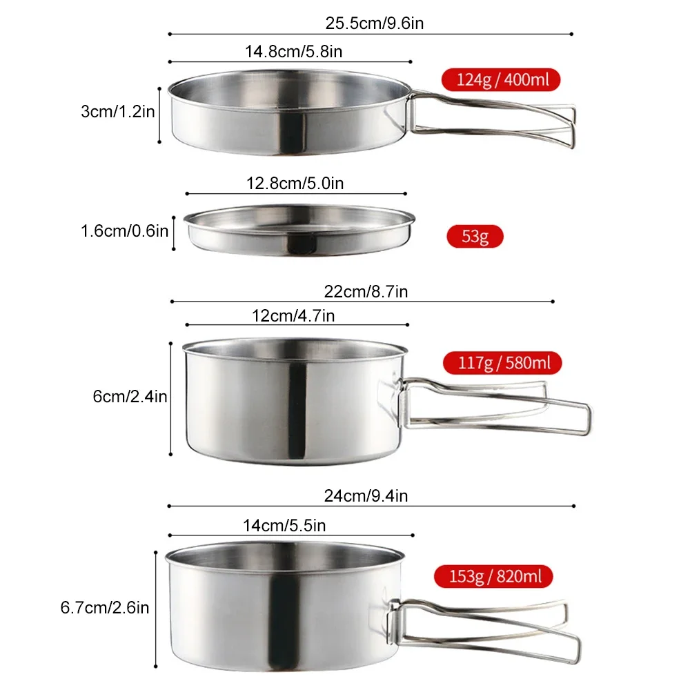 Fully equipped with 4pcs cookware kit, a nice choice for people who love hiking, camping, picnic and party.