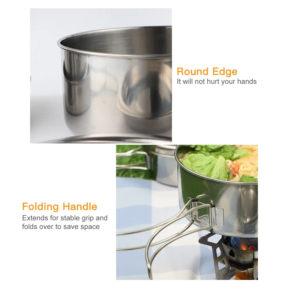 LIXADA Outdoor Stainless Steel Camping Cookware Set Pot & Bowl for Hiking Picnic