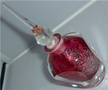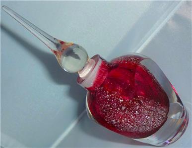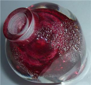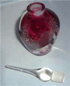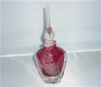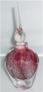 THIS IS A STUNNING HAND MADE STUDIO ART GLASS PINK PERFUME BOTTLE WITH SILVER FLECK IN THE GLASS