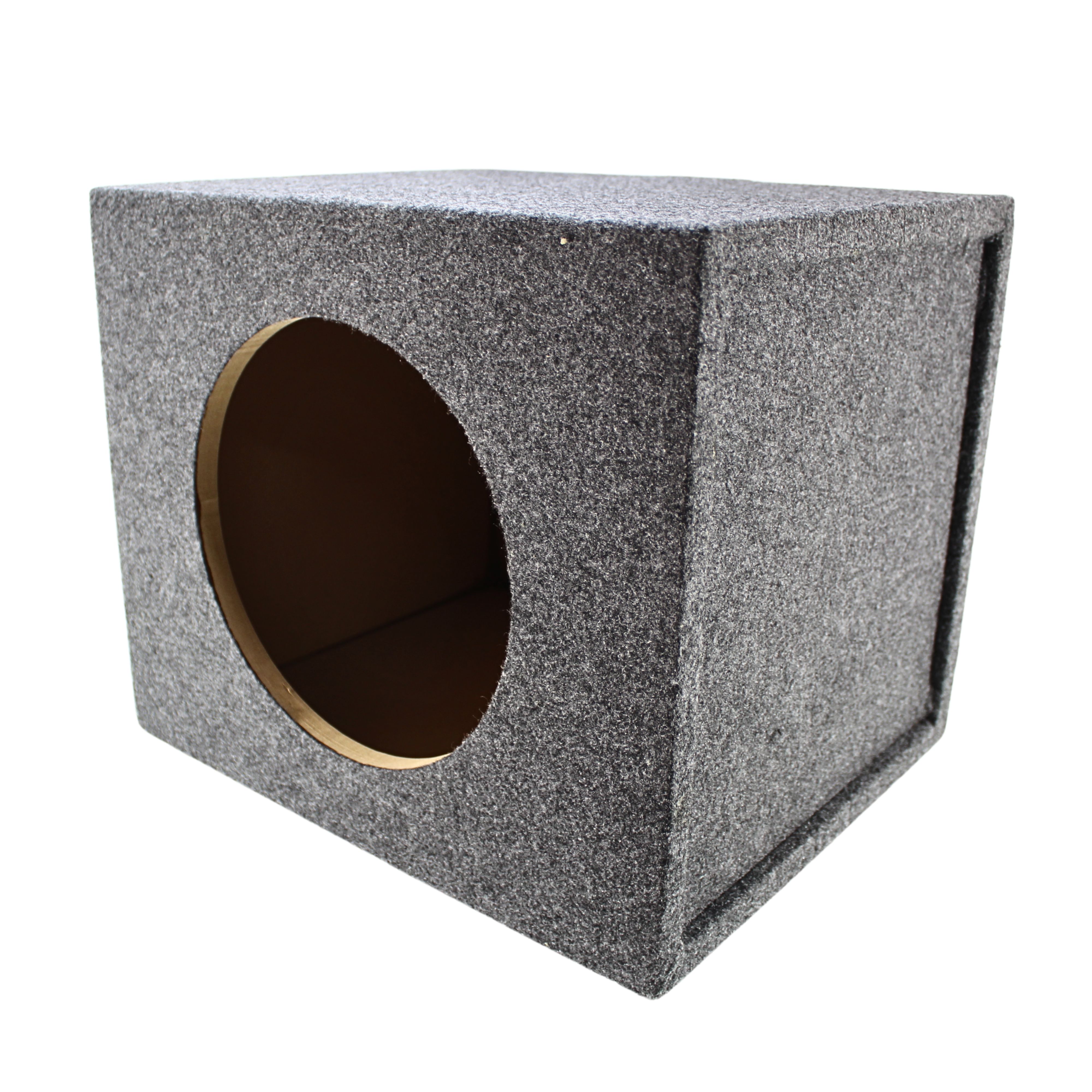 Enhance your car audio experience with a high-performance 10" sealed subwoofer enclosure. Designed for superior sound quality and durability, this enclosure is constructed with 3/4" MDF and features a 1" thick front face, ensuring exceptional strength and acoustic performance. The dark grey carpeting adds a sleek, stylish finish while providing an extra layer of protection.