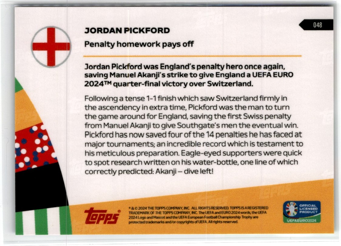 | 2024 TOPPS NOW EUROS WATER BOTTLE JORDAN PICKFORD #48 | ||||||||||||||||