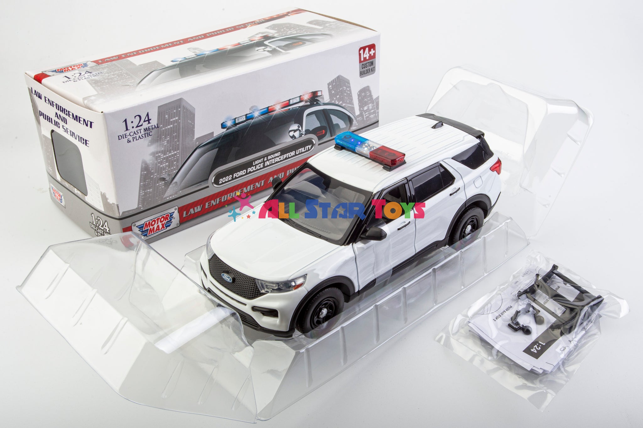 Brand New In Original Box - 2022 FORD EXPLORER UNMARKED POLICE INTERCEPTOR LIGHT AND SOUND VERSION WITH BUILDER KIT