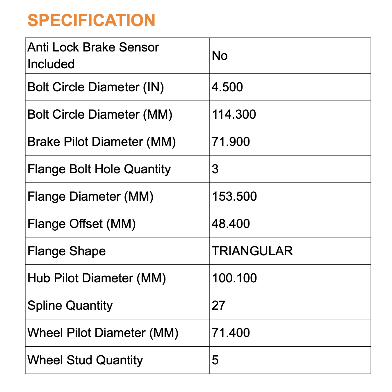 | Bolt Circle Diameter | 114.300 MM |