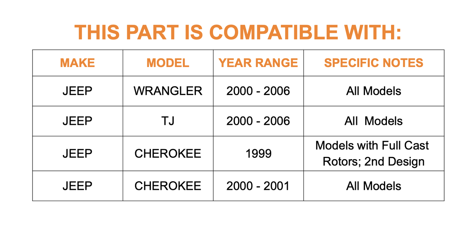 | JEEP | WRANGLER | 1999-2006 |