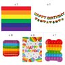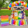 With this Lotsa Pops decorating kit, your trunk-or-treat station is sure to be the talk of the event! Chock full of colorful decorations that are too cute to spook, these decorations are perfect for trunk-or-treat events at school, in your neighborhood or within your community. Pop around this site for candy and party favor handouts to delight trick-or-treaters! (179 pcs. per unit)br br Includes:br • 144 Latex Standard Color Balloons (11" This popular assortment features dark blue, light blue, green, yellow, white, orange, red, purple, and pink.)br • 1 Cardboard Lotsa Pops Pop Fidget Toy Party Bear Stand-Up (33 1/4" x 42" Simple assembly required. Stand-ups are one-sided with a brown cardboard back.)br • 6 Cardstock Lotsa Pops Pop Fidget Toy Party Cutouts (9" - 11" x 7 1/2" - 11 1/2")br • 8 Paper Lotsa Pops Pop Fidget Toy Party Dessert Plates (7")br • 8 Paper Lotsa Pops Pop Fidget Toy Party Dinner Plates (9")br • 2-Pc. Cardstock Lotsa Pops Pop Fidget Toy Party Garland (7 ft.)br • 6 Cardboard Lotsa Pops Pop Fidget Toy Birthday Party Posters (16" x 20 3/4")br • 1 Plastic Rainbow Insta-Mural Photo Op Backdrop Banner (5 ft. x 6 ft.)br • 1 Tissue Paper Rainbow Party Fringe Table Skirt (Not recommended to attach directly to surface; safe to attach to disposable tablecloth. 9 ft. x 29")br • 1 Vinyl Rainbow Twist (25 ft. x 4")br • 1 Plastic White Pleated Table Skirt (Includes an adhesive-strip backing for easy application. 14 ft. x 29")br br • Assortments are subject to change at any time and may vary from picture shown. Substituted items will be similar in nature.
