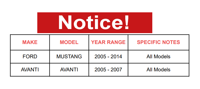| FORD | MUSTANG | 2005 - 2014 | All MODELS |