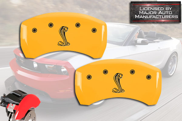 2015 Ford Mustang GT / Premium Rear Yellow MGP Brake Disc Caliper Covers Snake